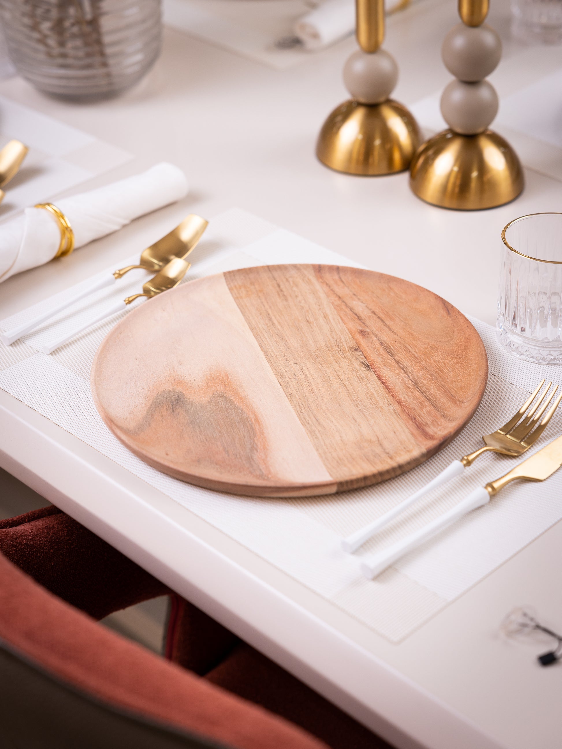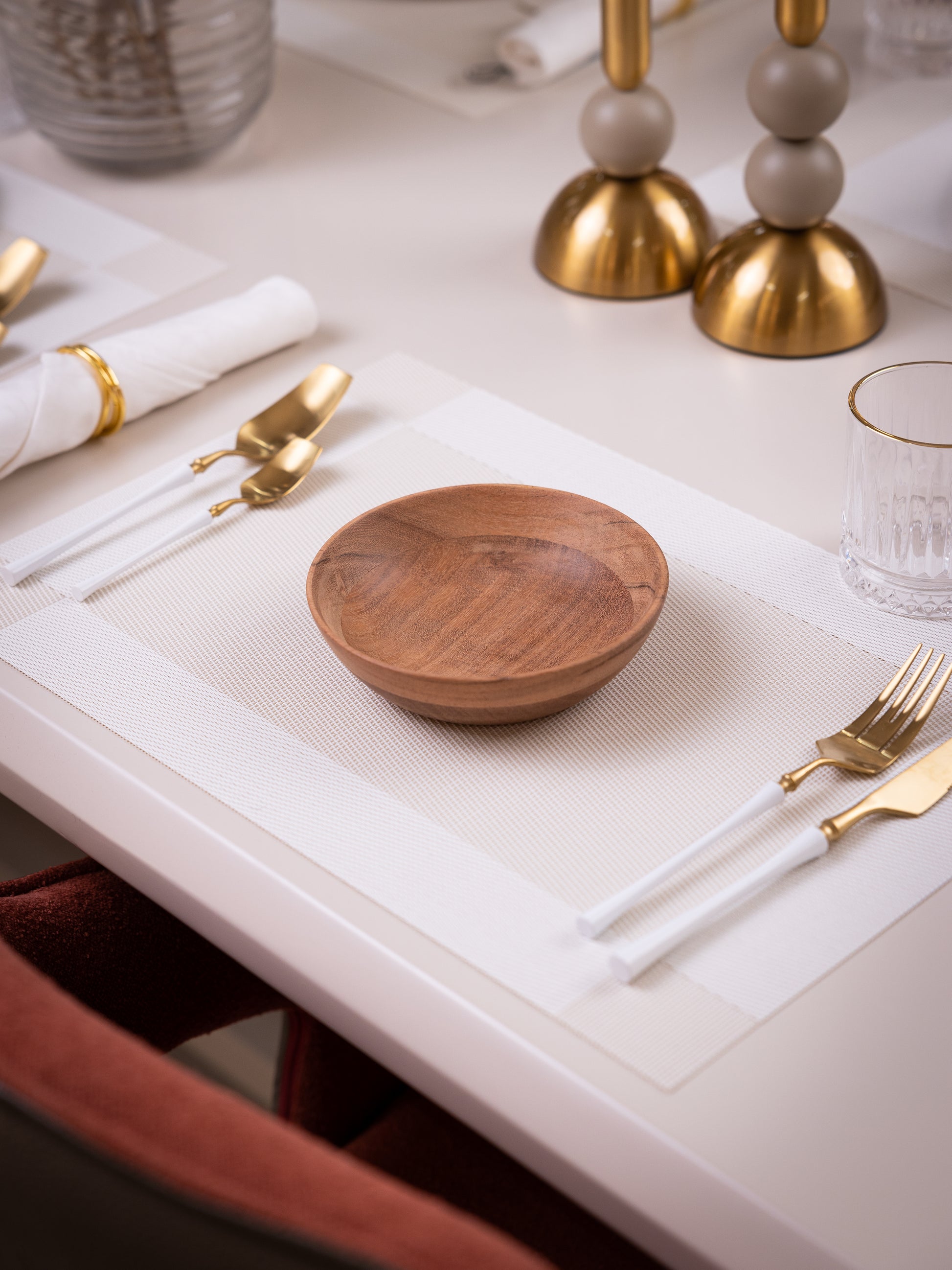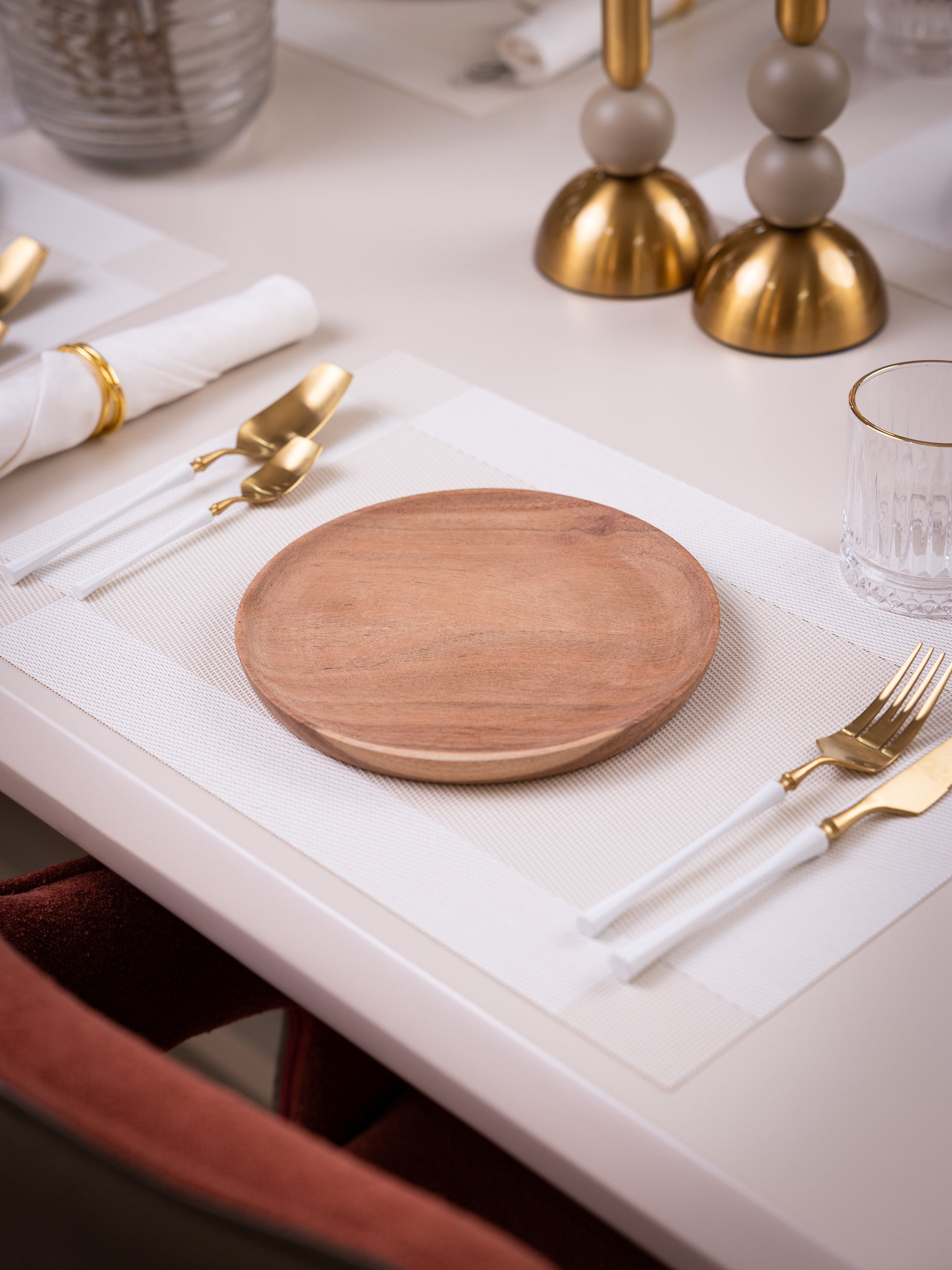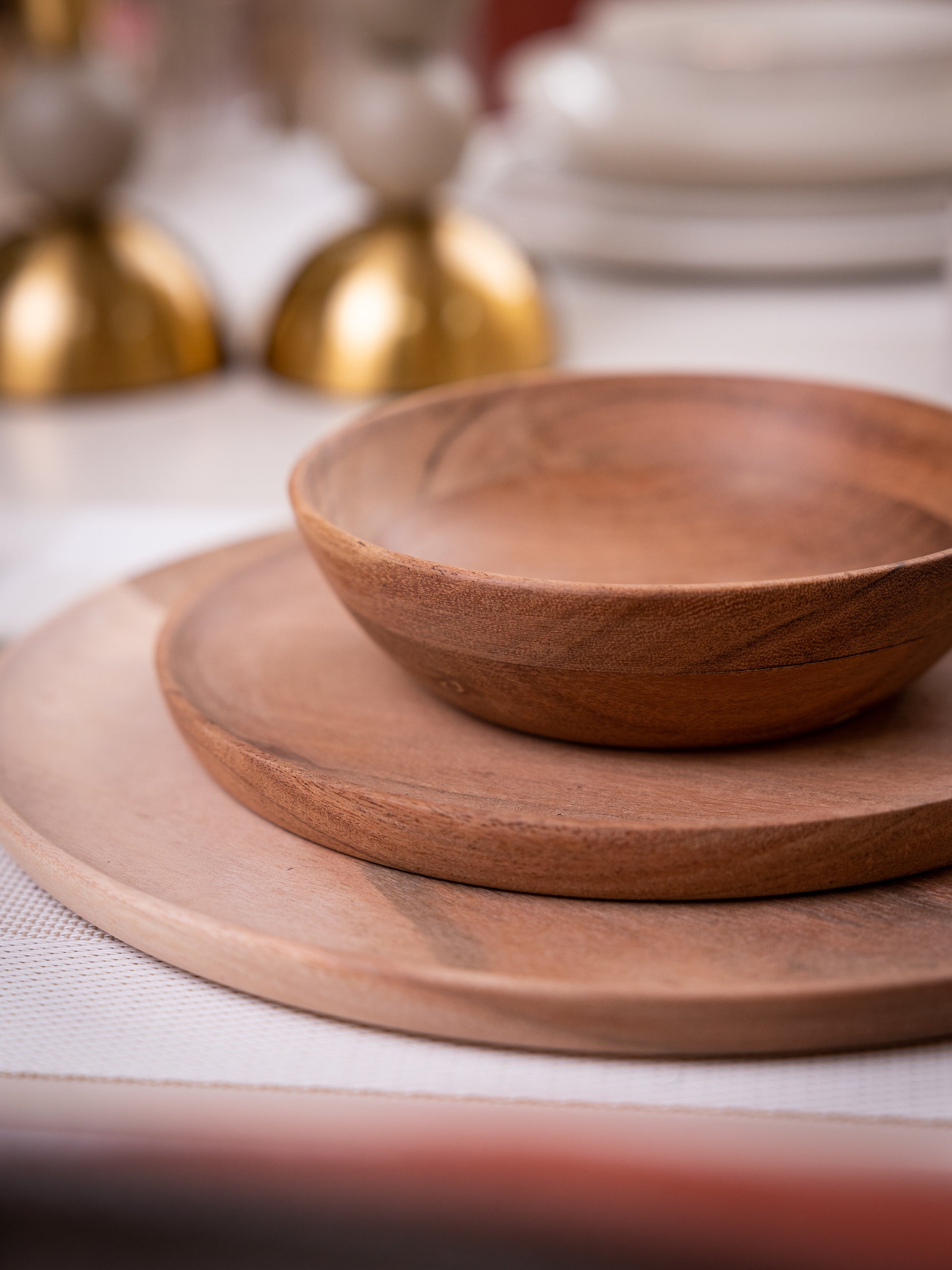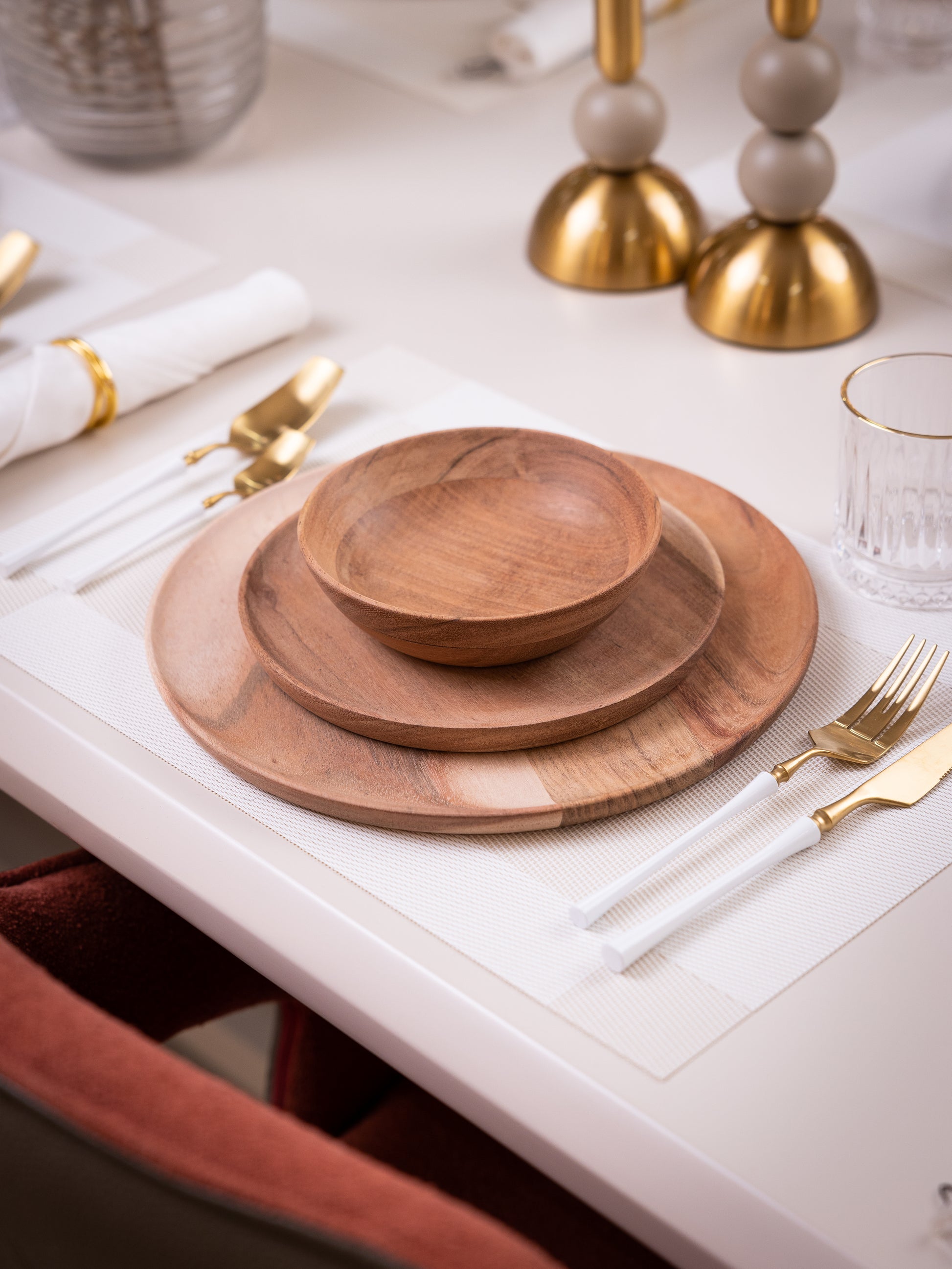 مجموعة صحون خشب بتصميم أنيق تباع كل 6 صحون بشكل منفصل لتنسيق سفرتك بالشكل