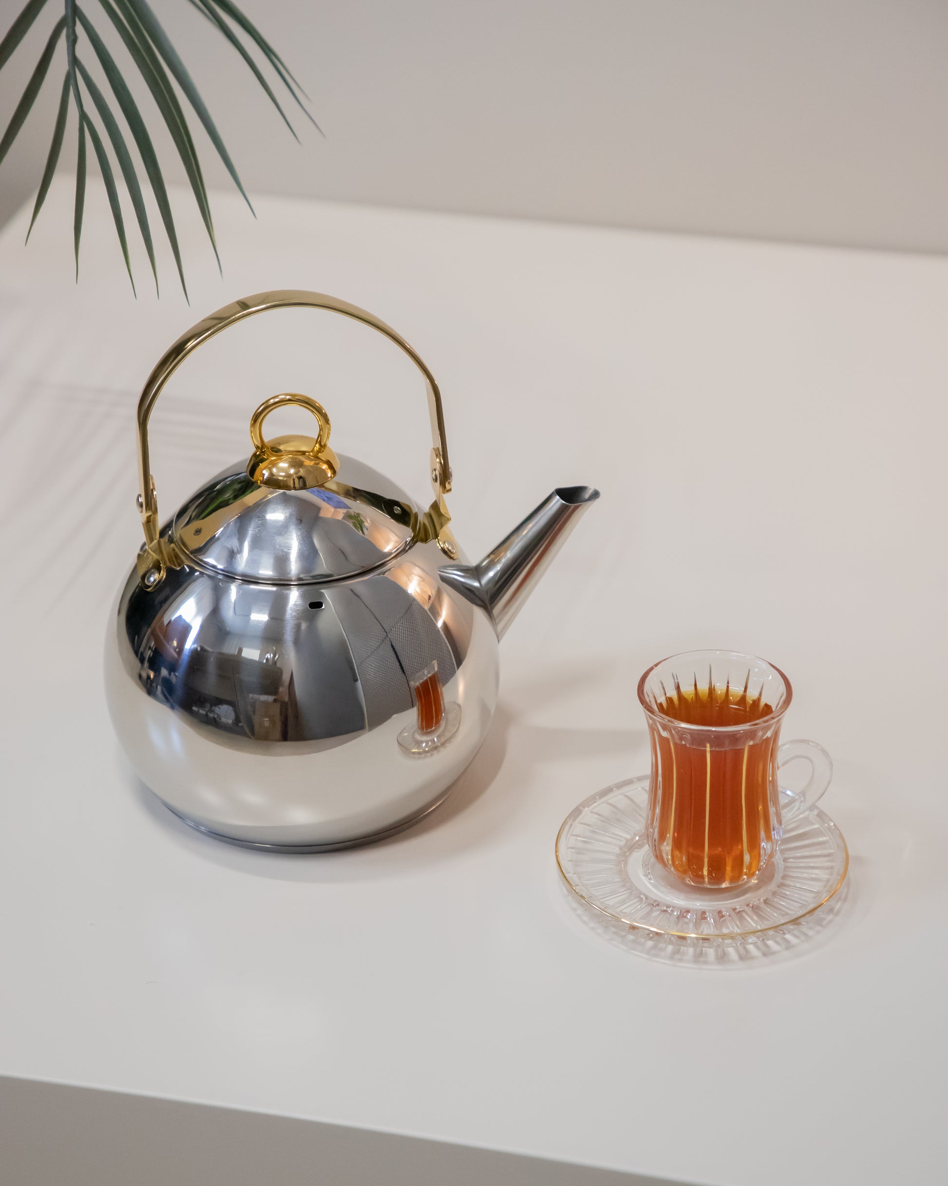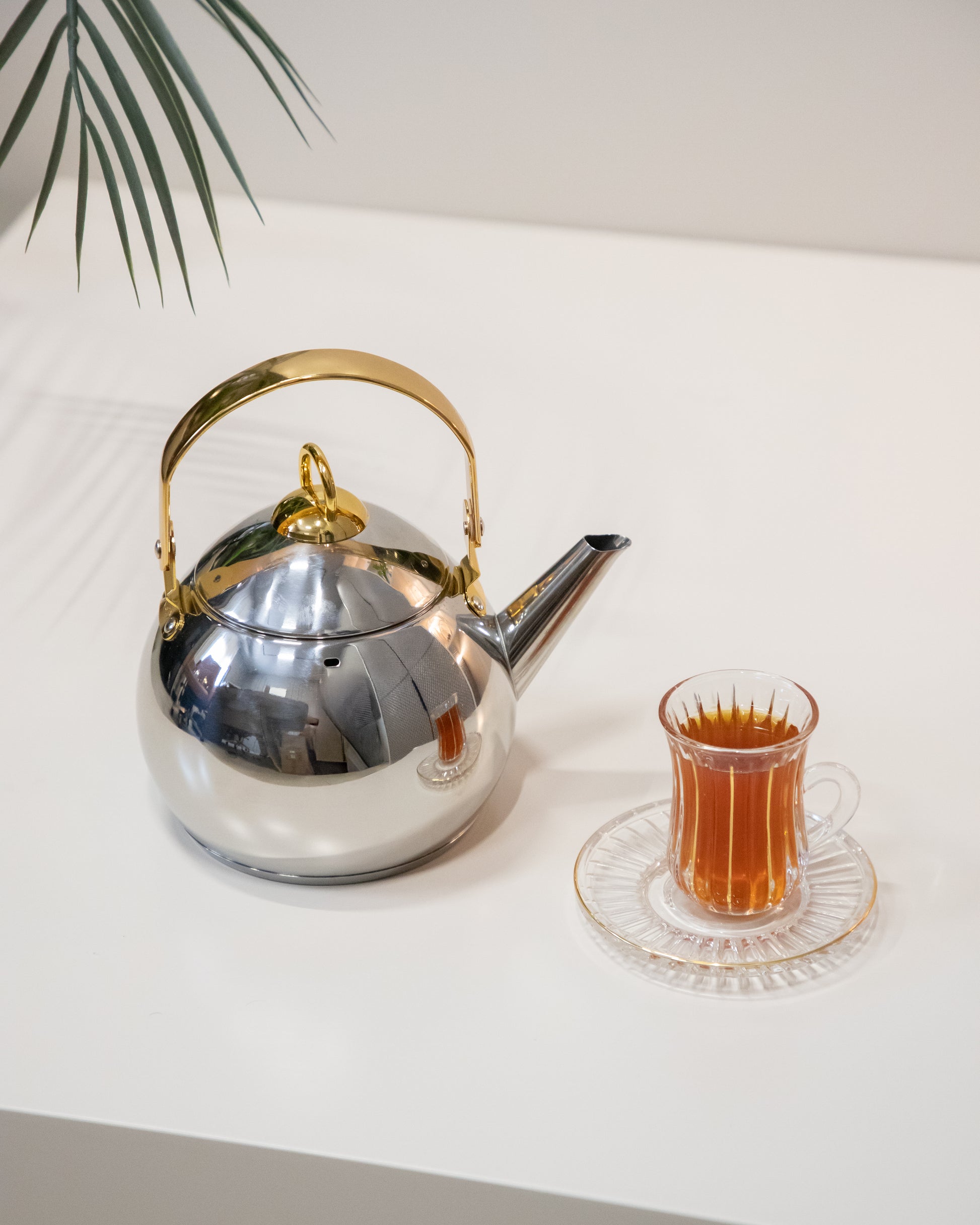 ابريق شاي عالي الجودة بتصميم مميز و أنيق مقاوم للصدأ , يأتي بمقبض بتصميم مميز  مريح و آمن للاستخدام , متوفر بحجمين لتختاري الحجم المناسب الك يباع كل حجم بشكل منفصل