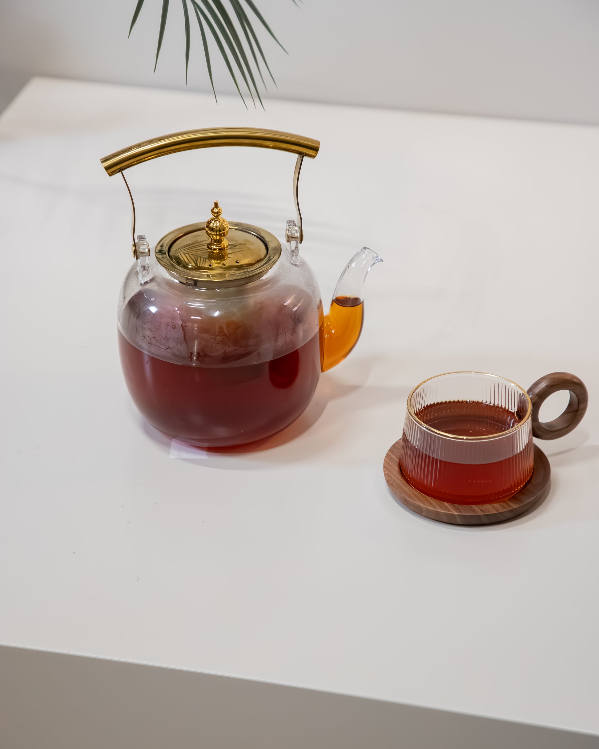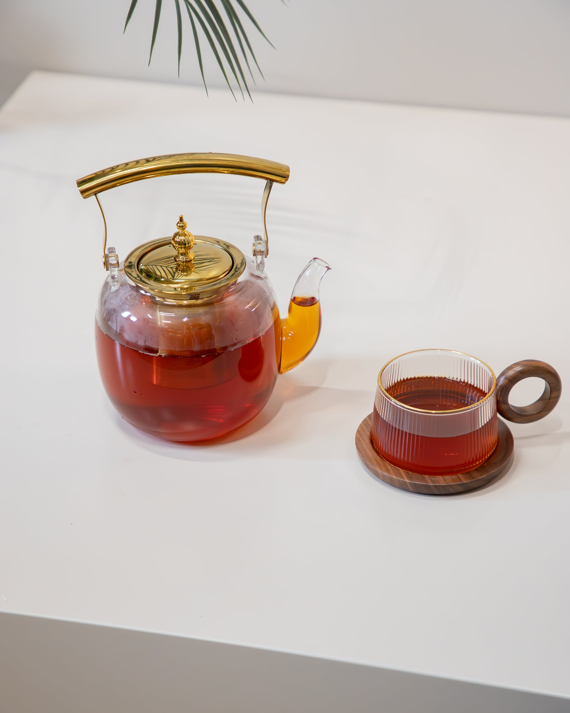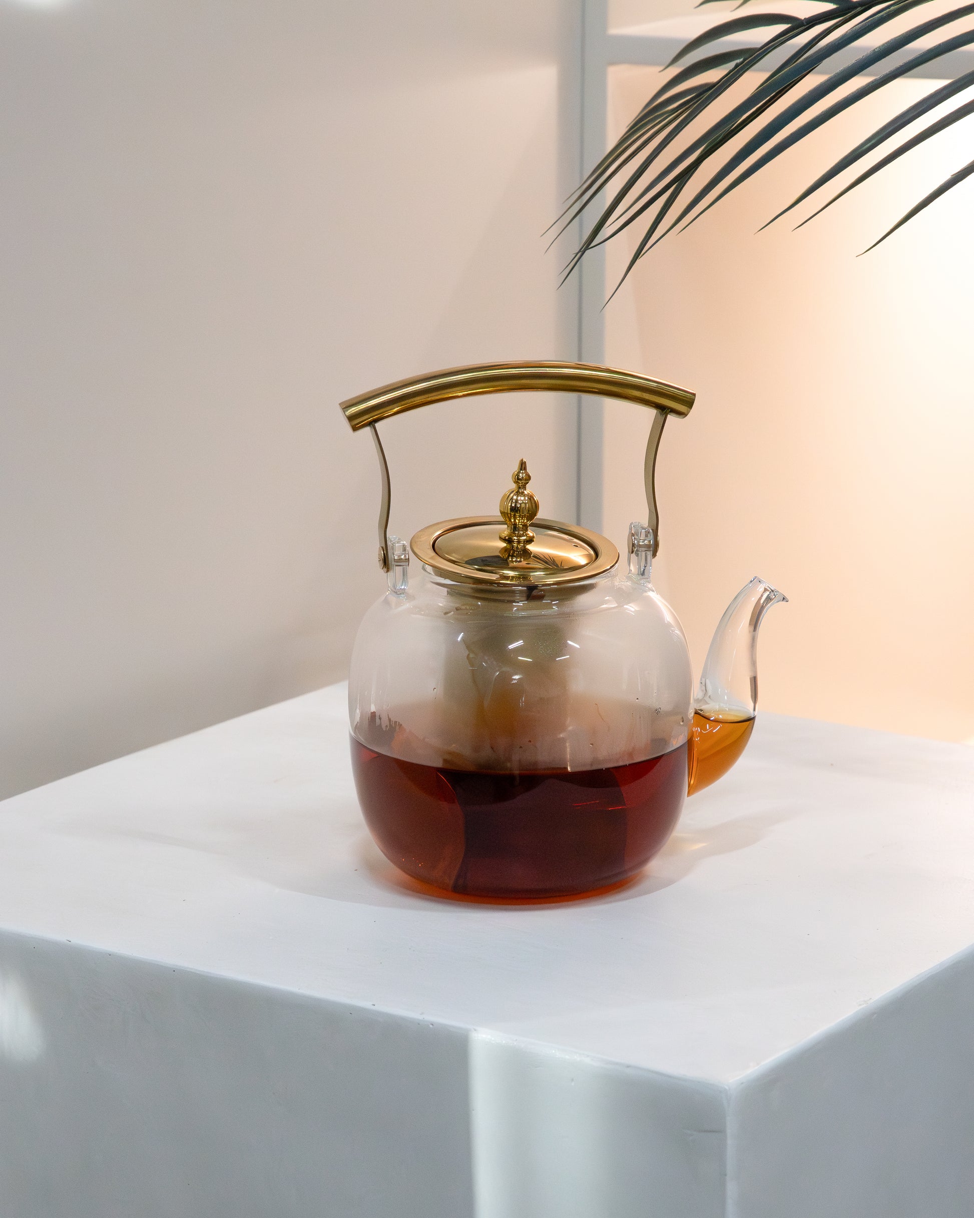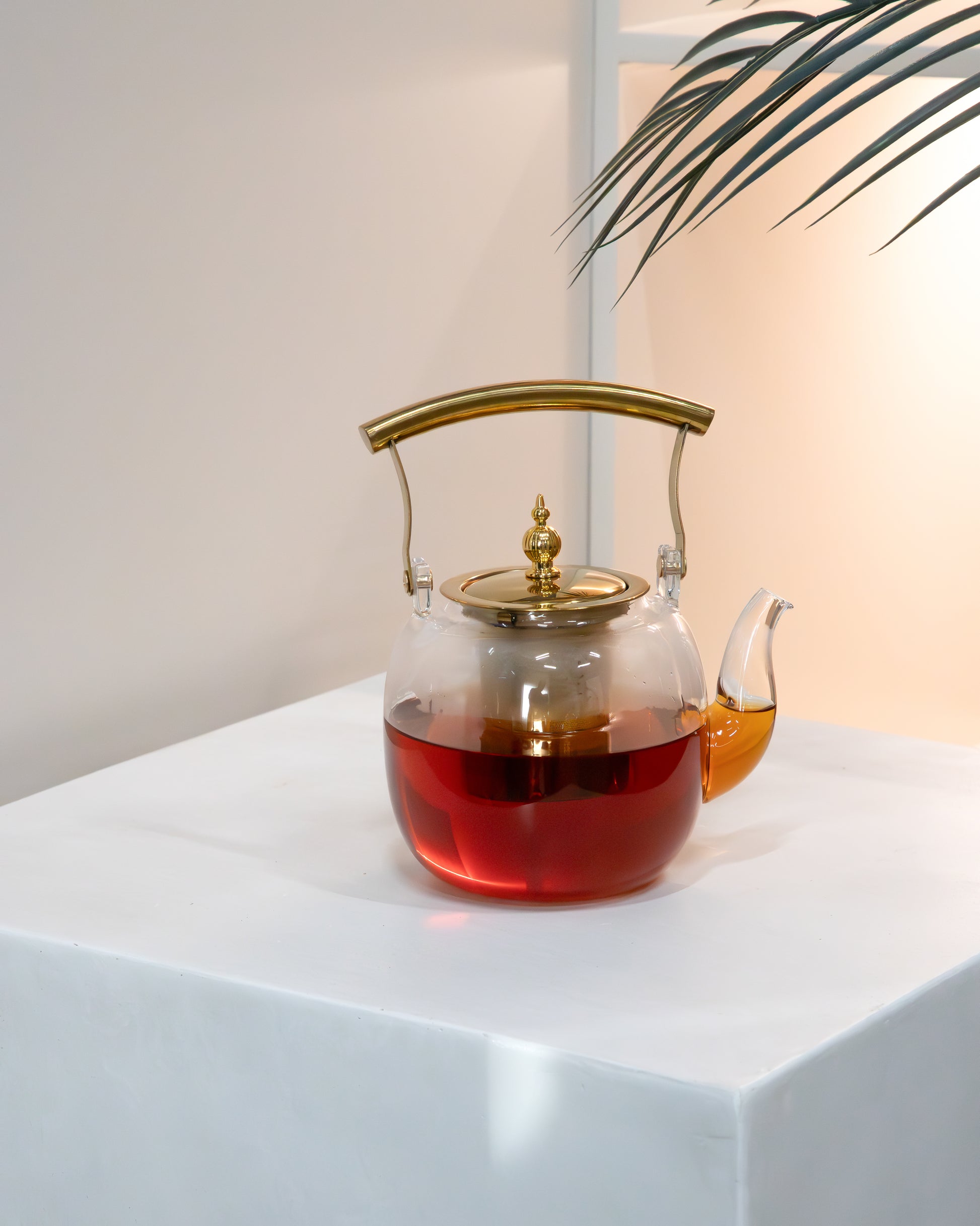 ابريق شاي زجاجي بتصميم مميز و أنيق مع مصفاة ذهبية , مصمم خصيصا ليعطي