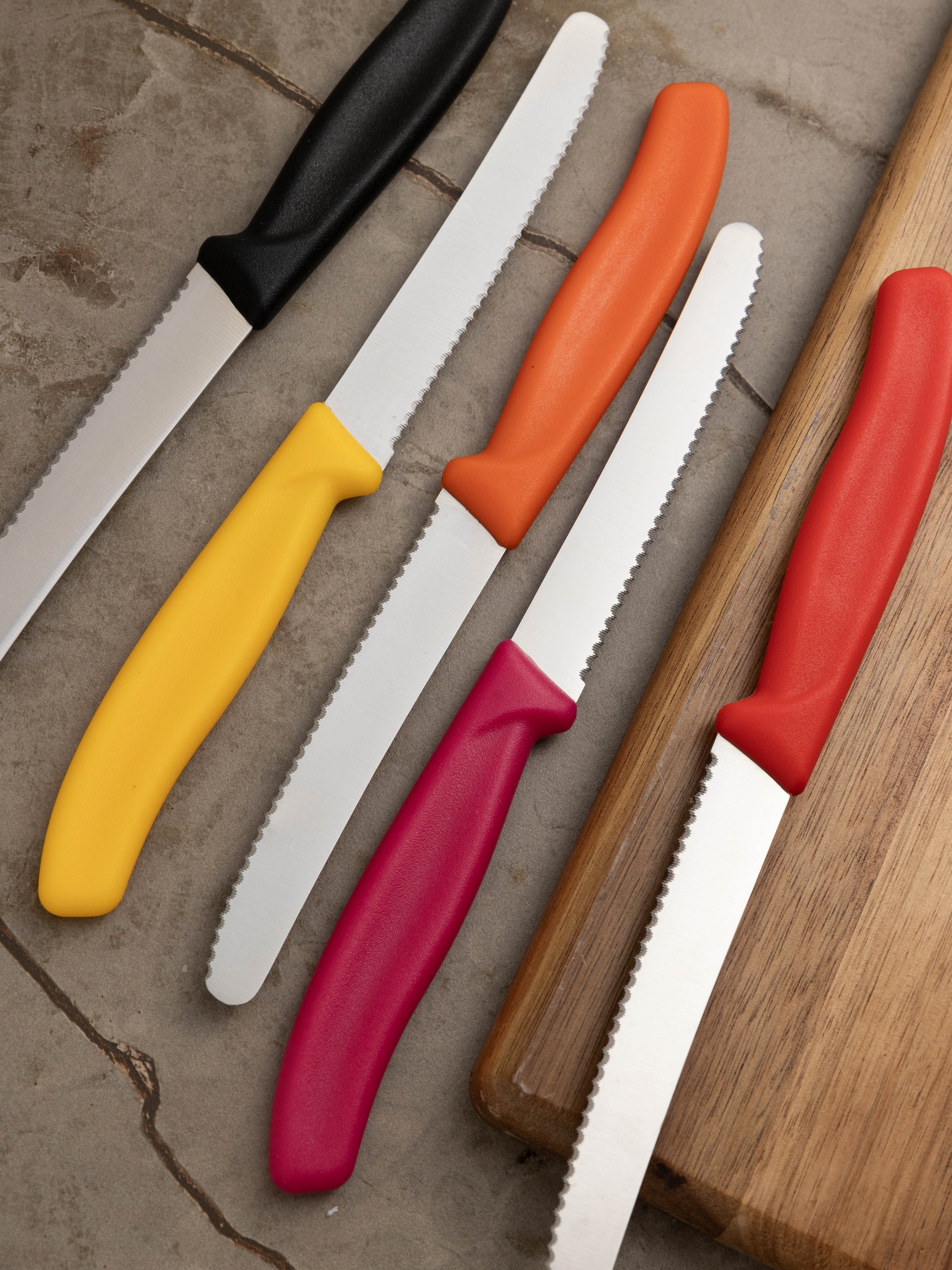 يتكون الطقم من 6 سكاكين بألوان مختلفة تجمع بين التصميم