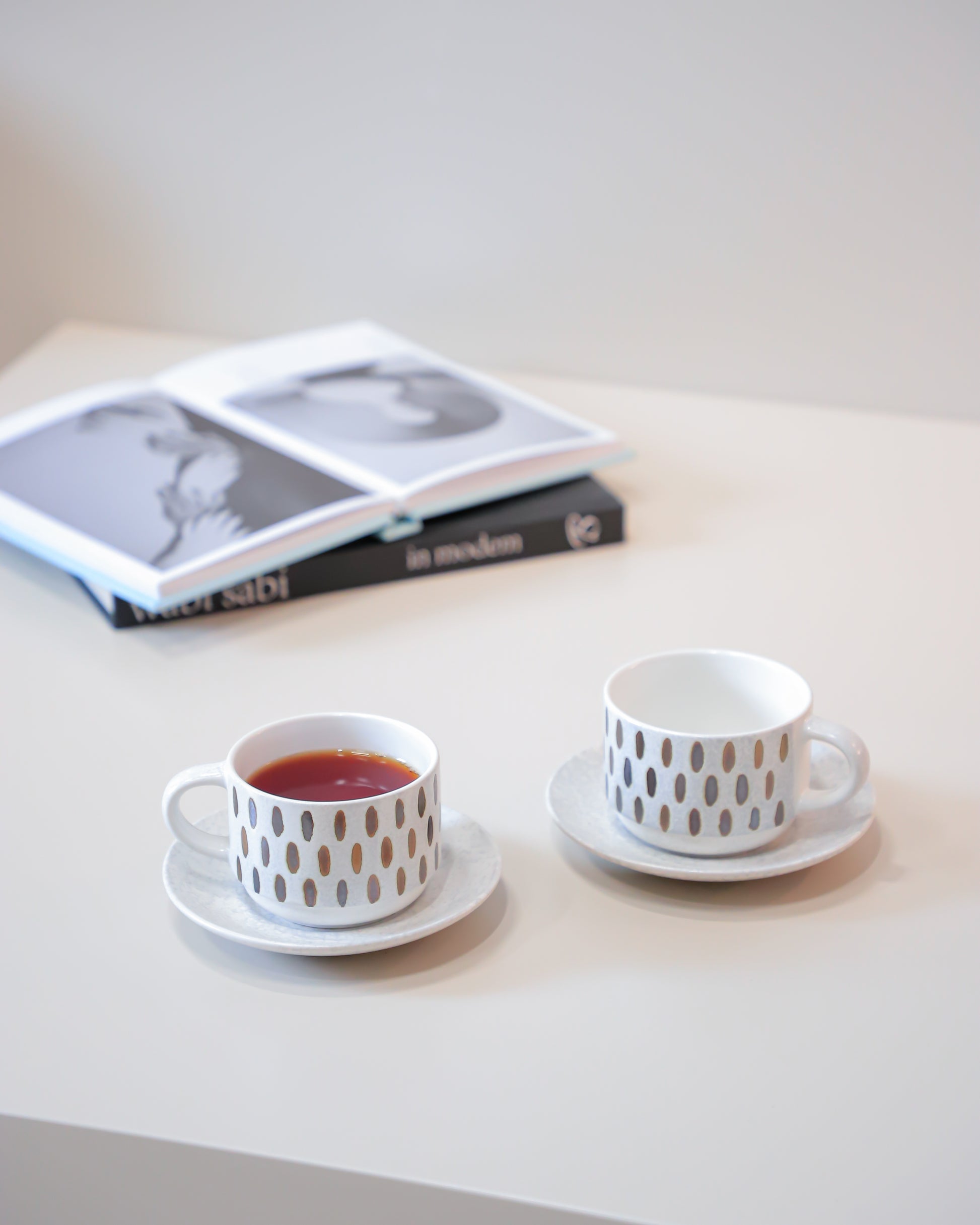 طقم فناجين شاي بورسلان مع صحن بتصميم أنيق