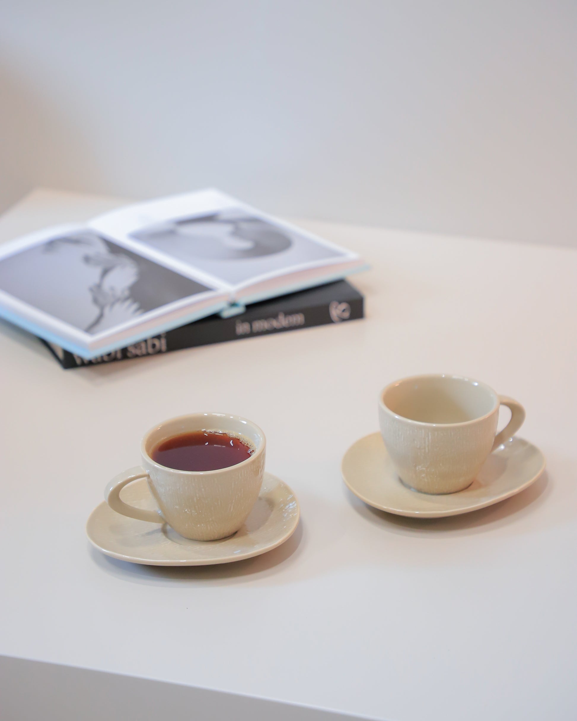 طقم فناجين شاي بورسلان بيج مع صحن بتصميم أنيق