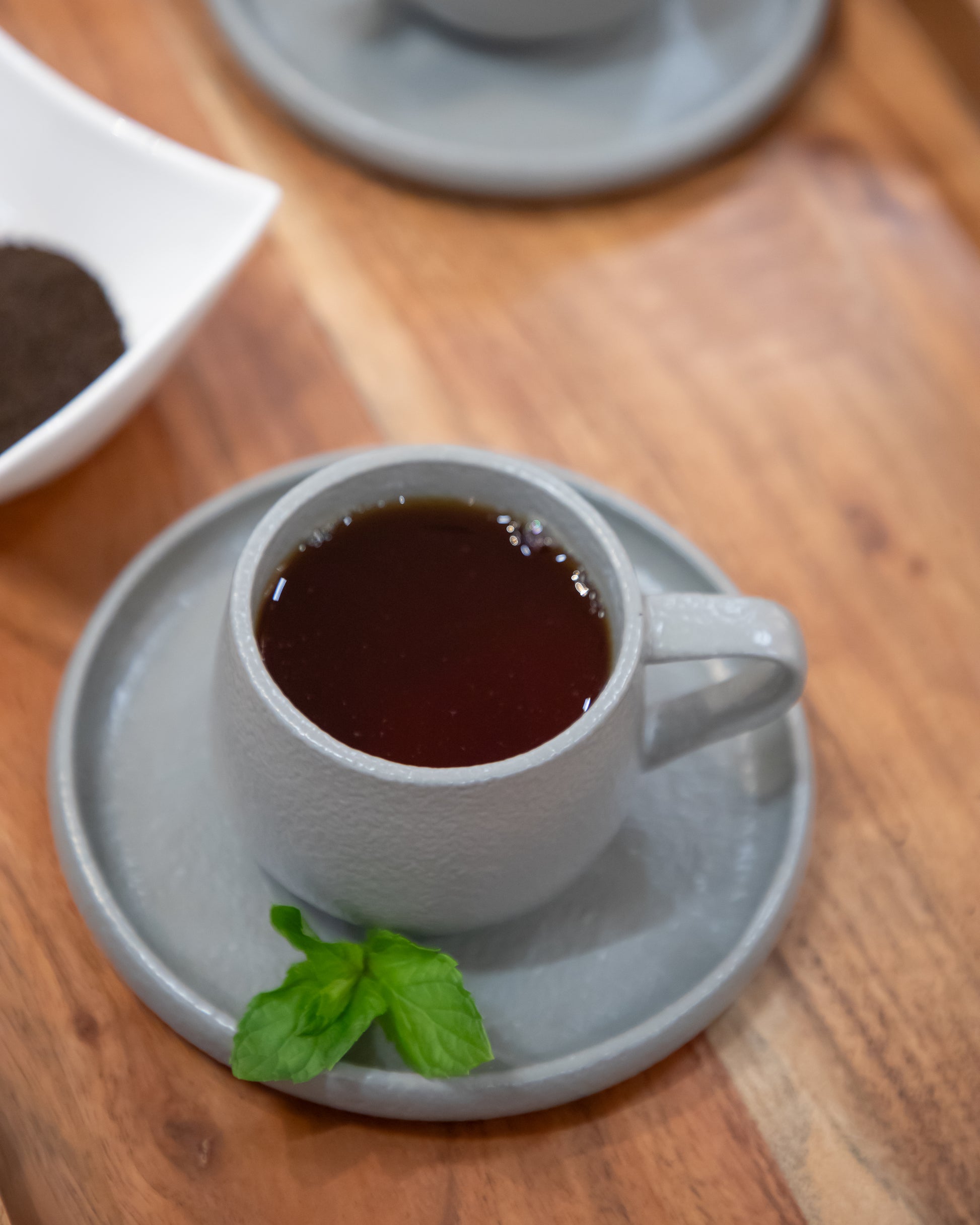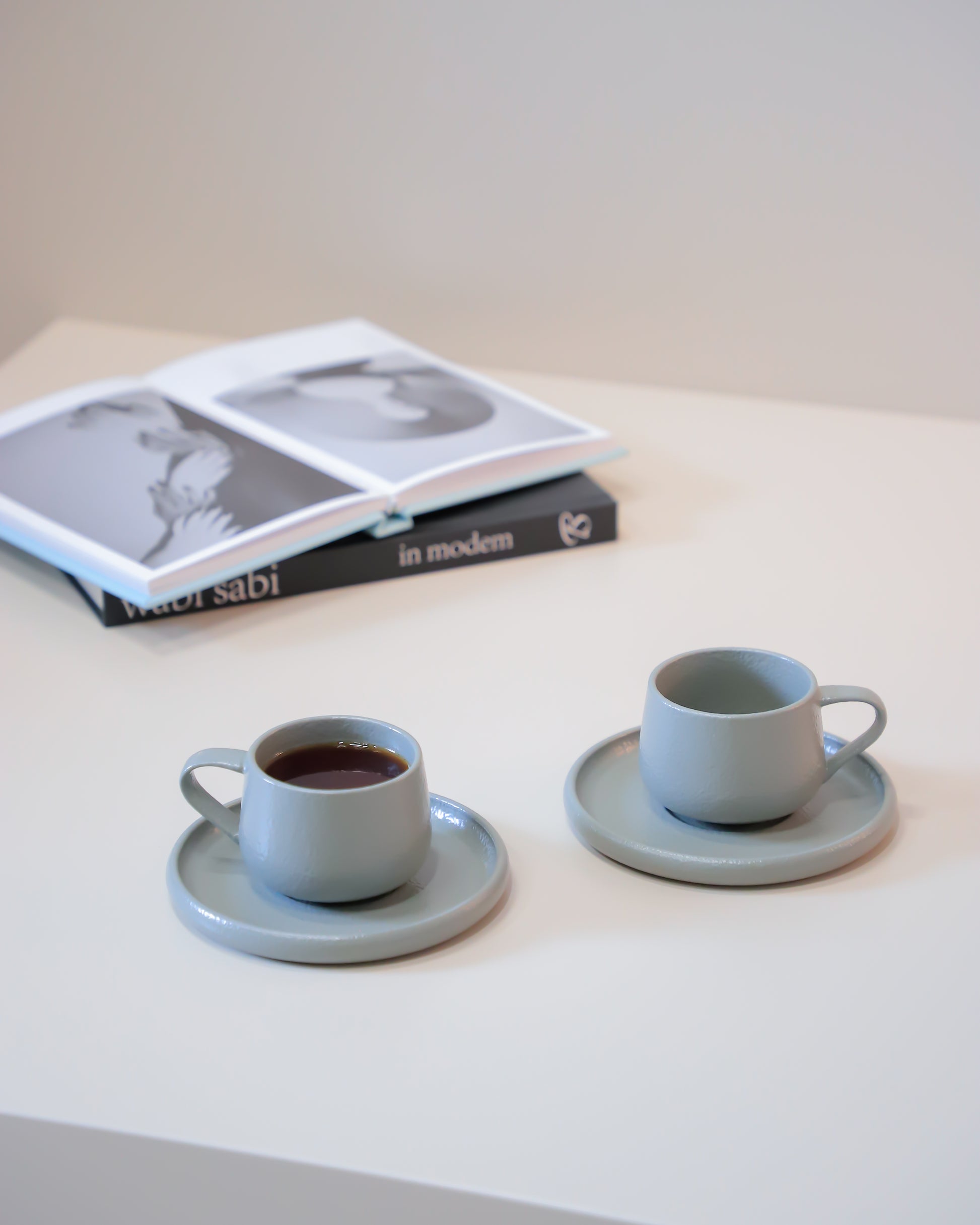 طقم فناجين شاي رمادي مع صحن بتصميم أنيق
