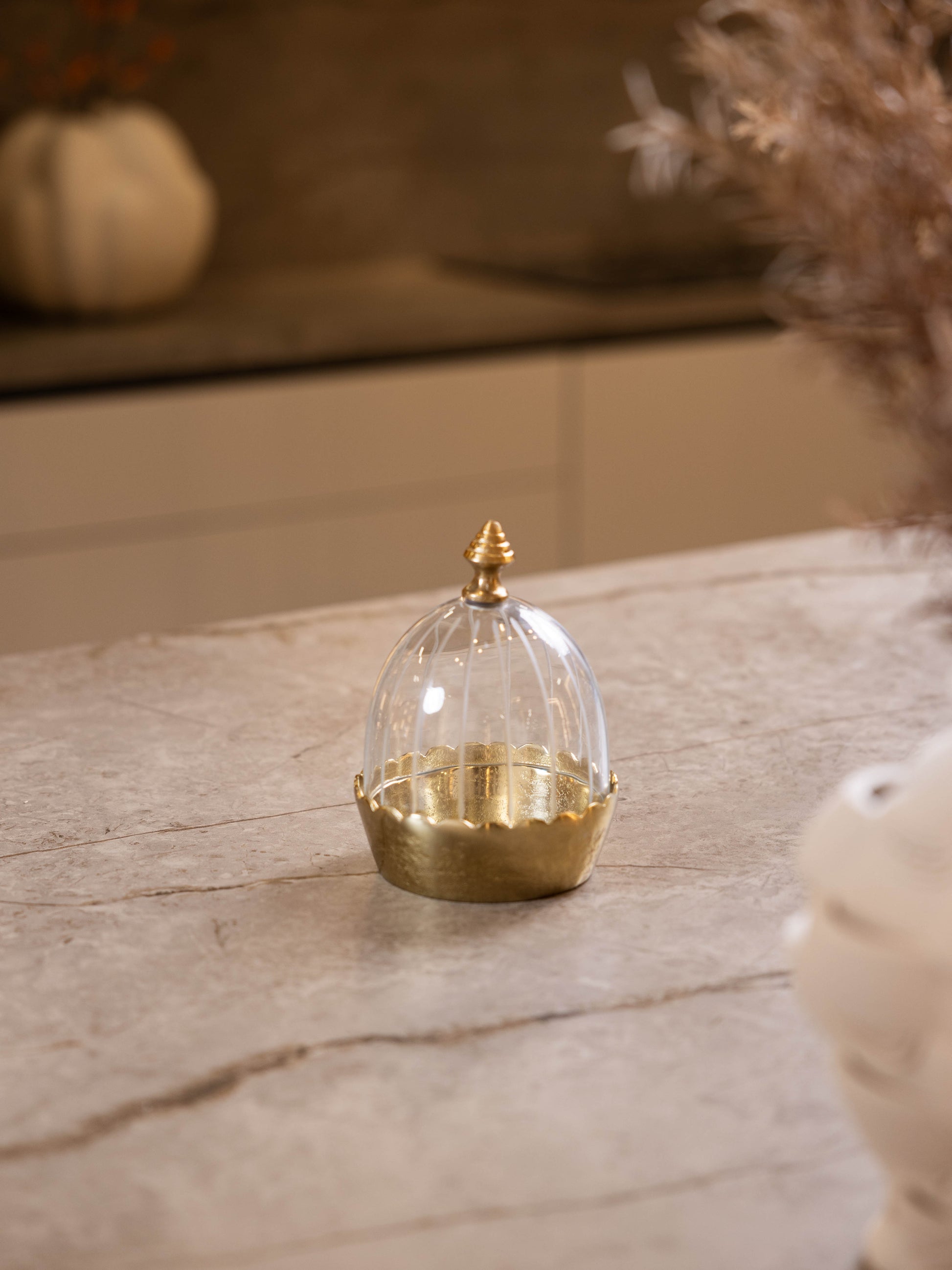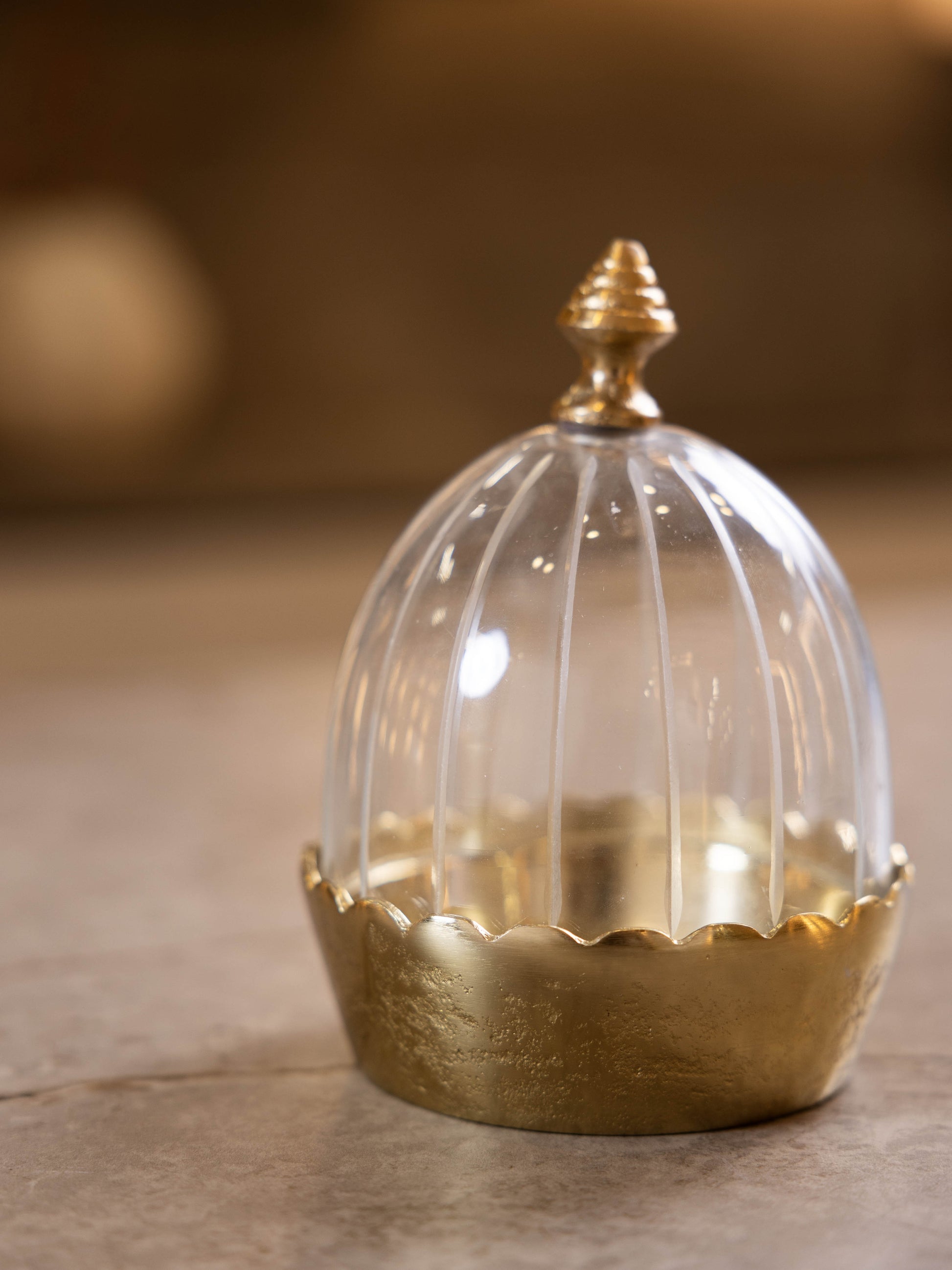مضيفة حلويات بغطاء زجاجي وقاعدة معدن