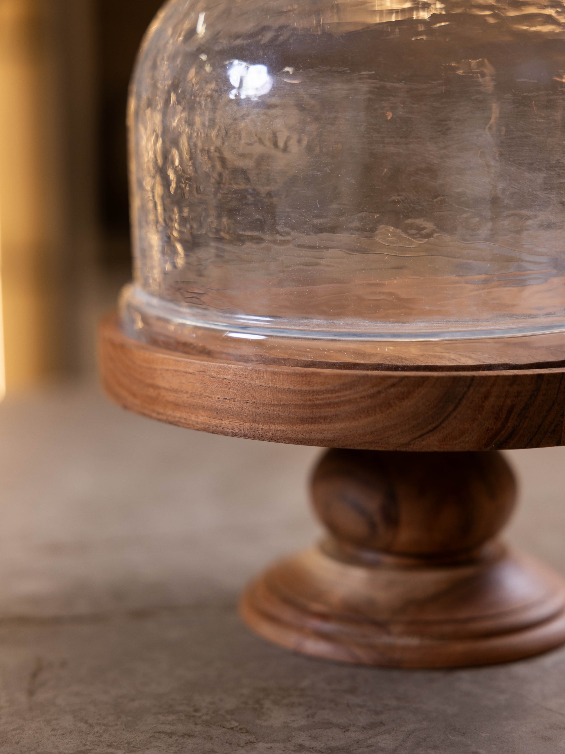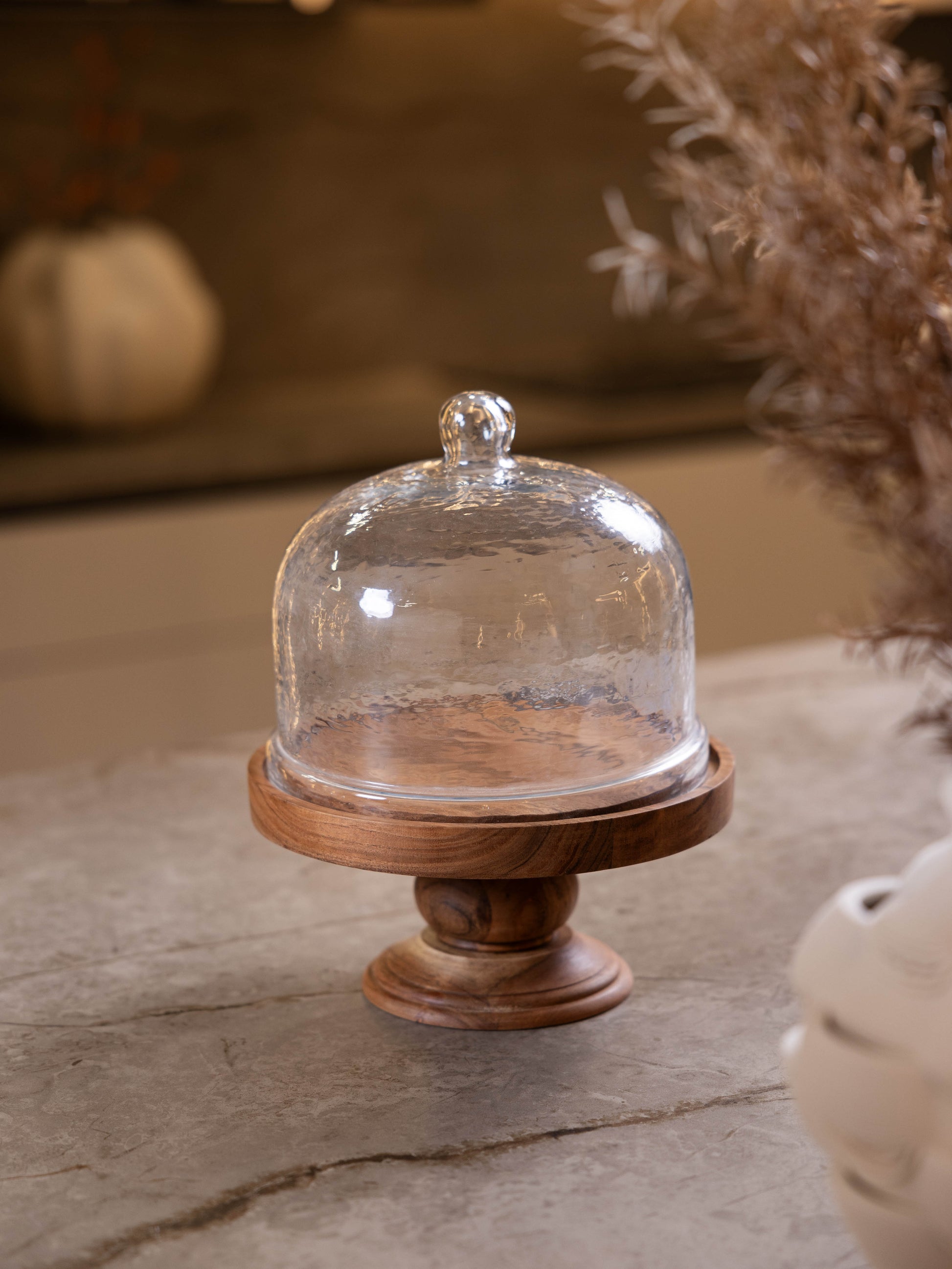 مضيفة كيك بغطاء زجاجي وقاعدة خشبية