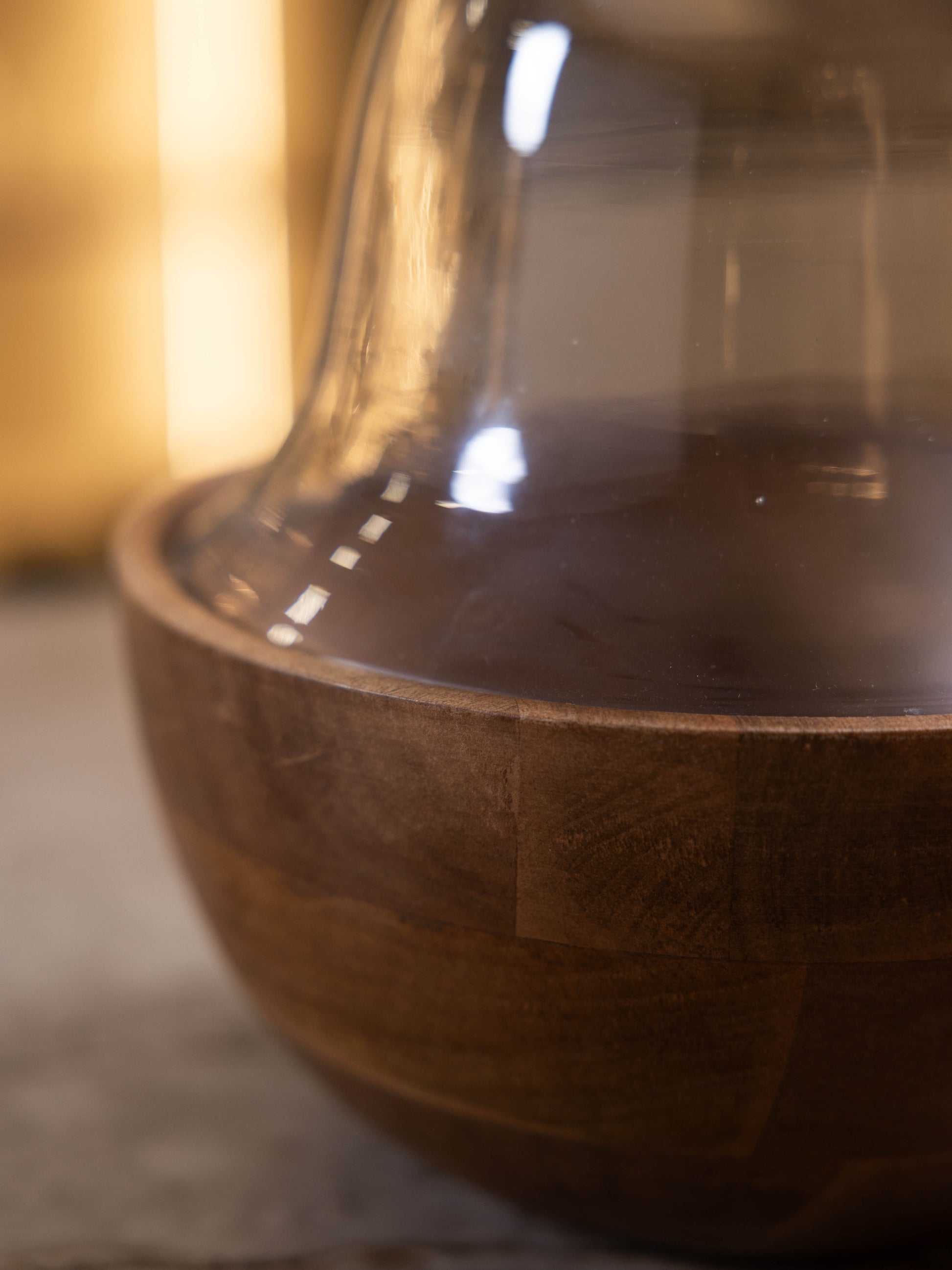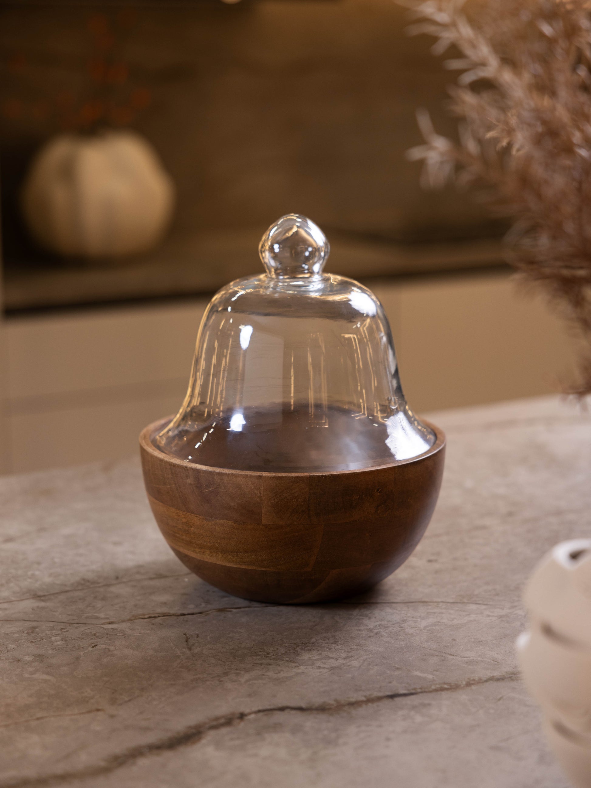 مضيفة كيك بغطاء زجاجي وقاعدة خشبية عميقة