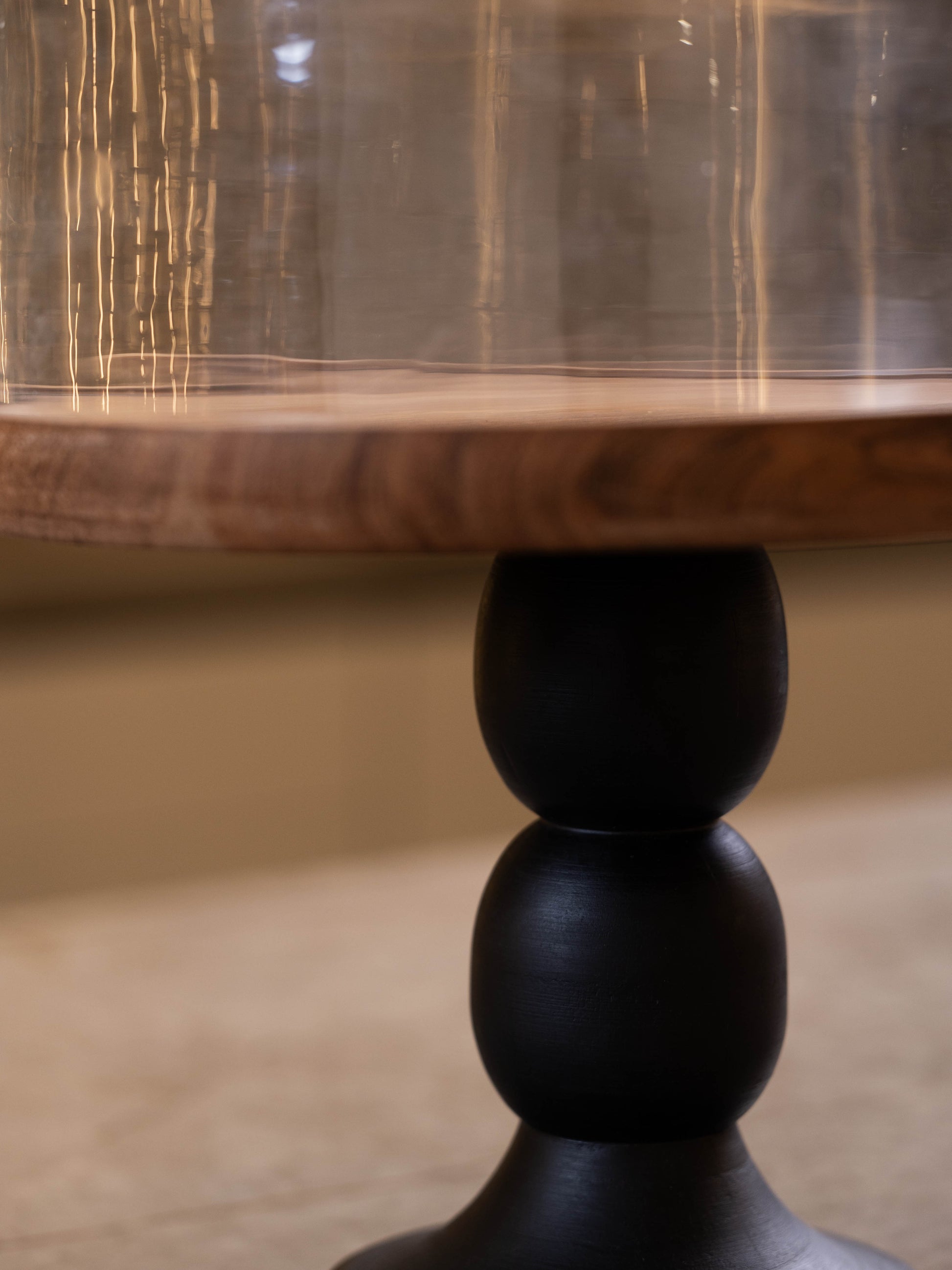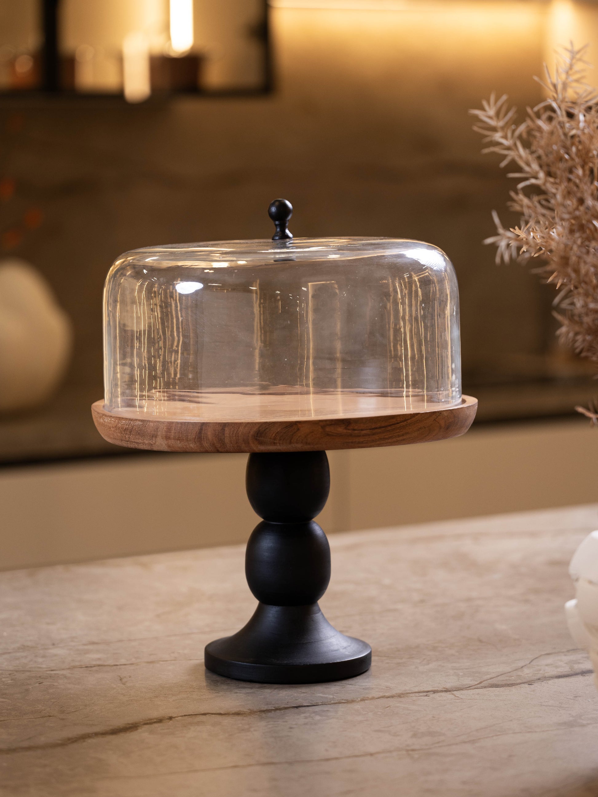 مضيفة كيك بغطاء زجاجي وقاعدة خشبية