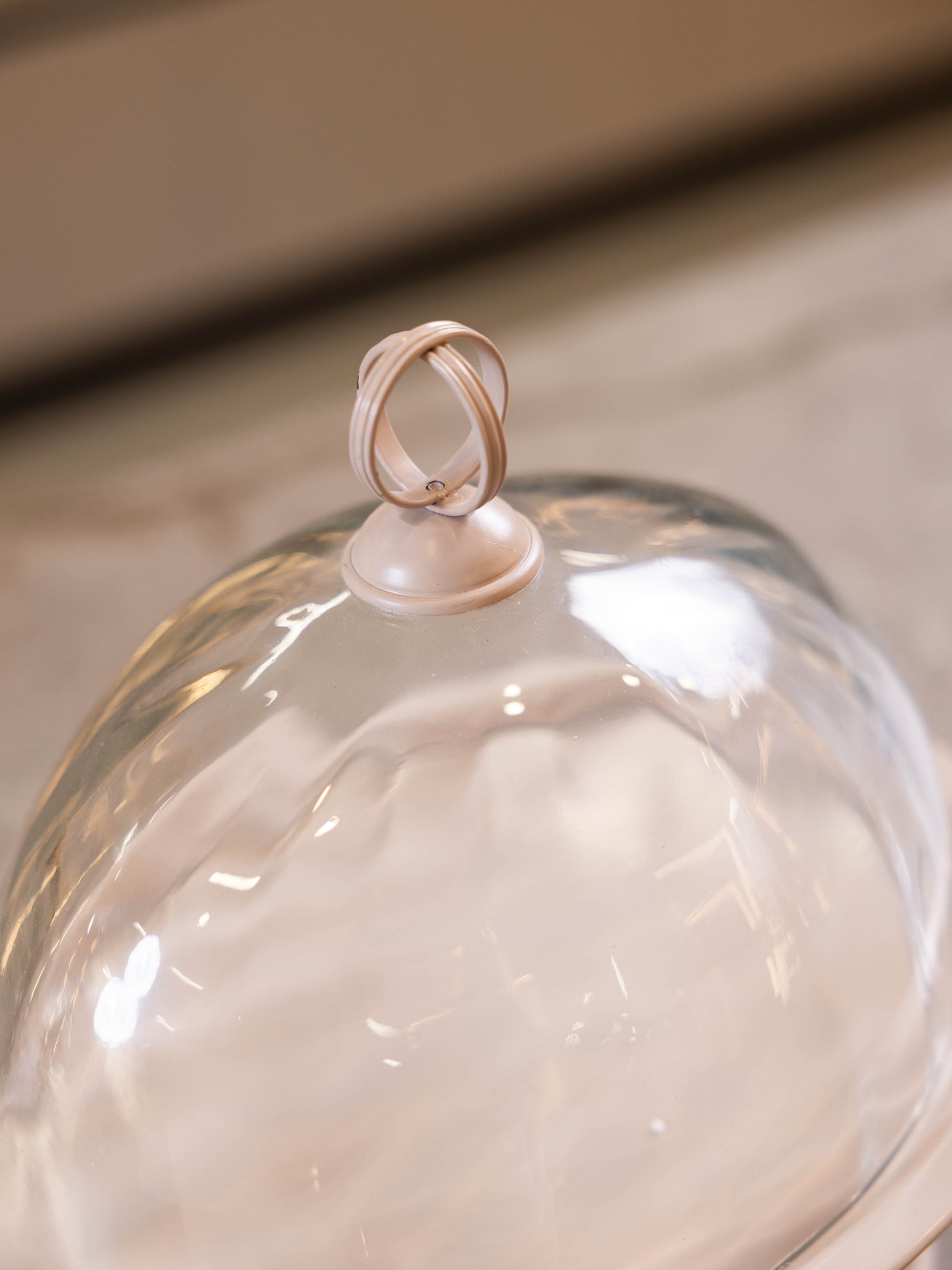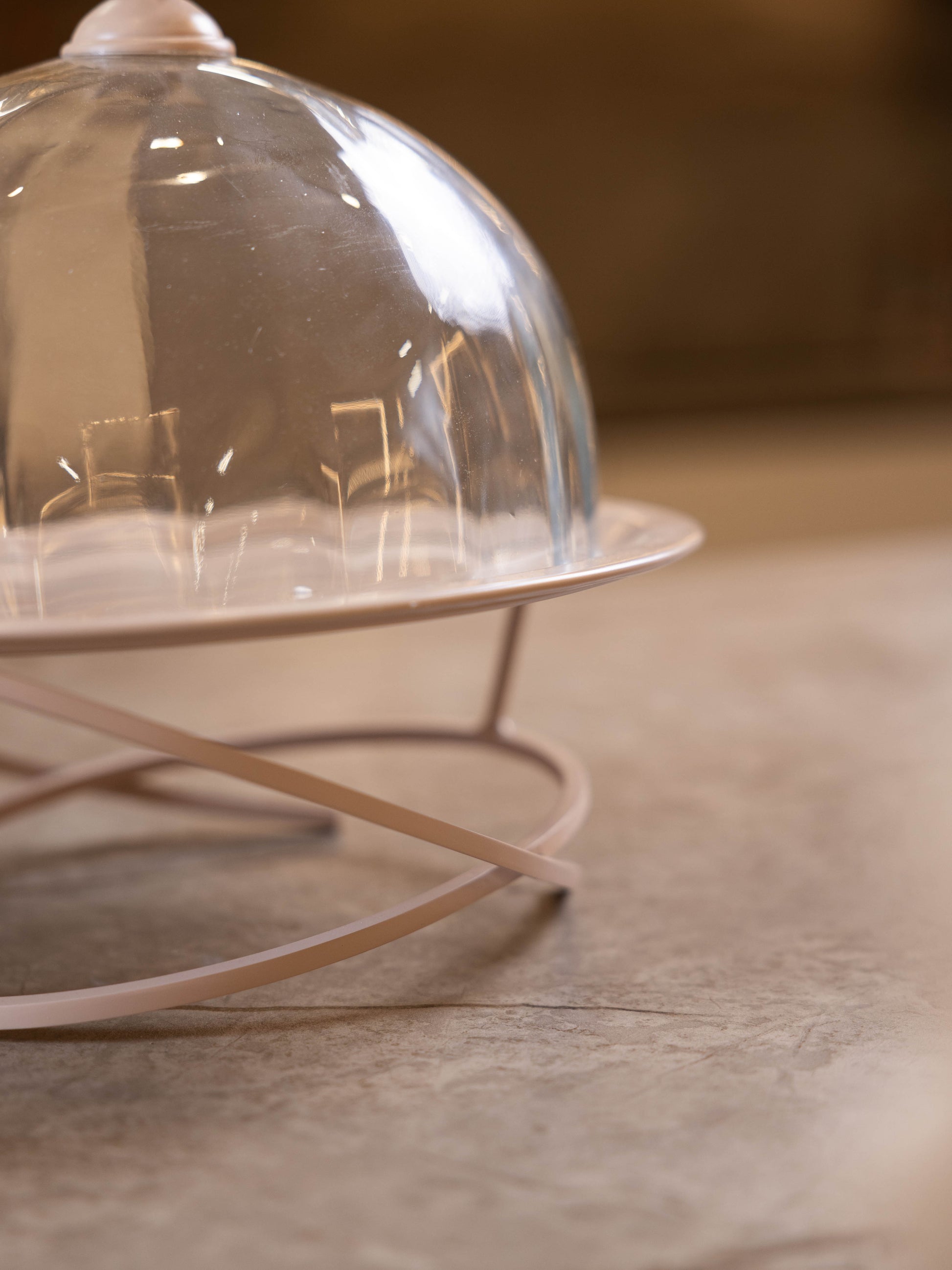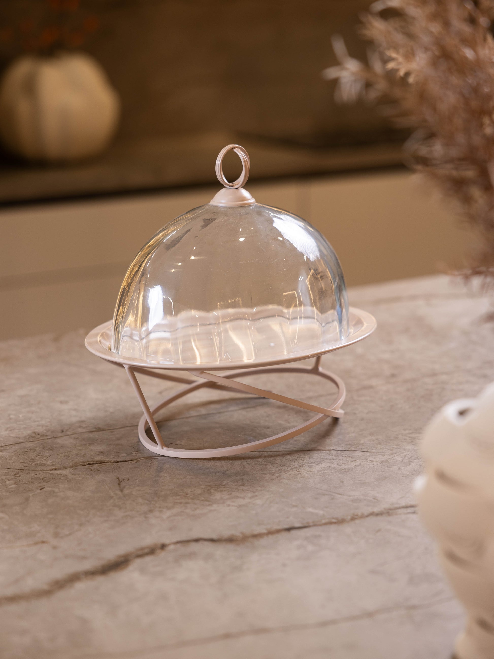 مضيفة كيك بغطاء زجاجي وقاعدة معدن