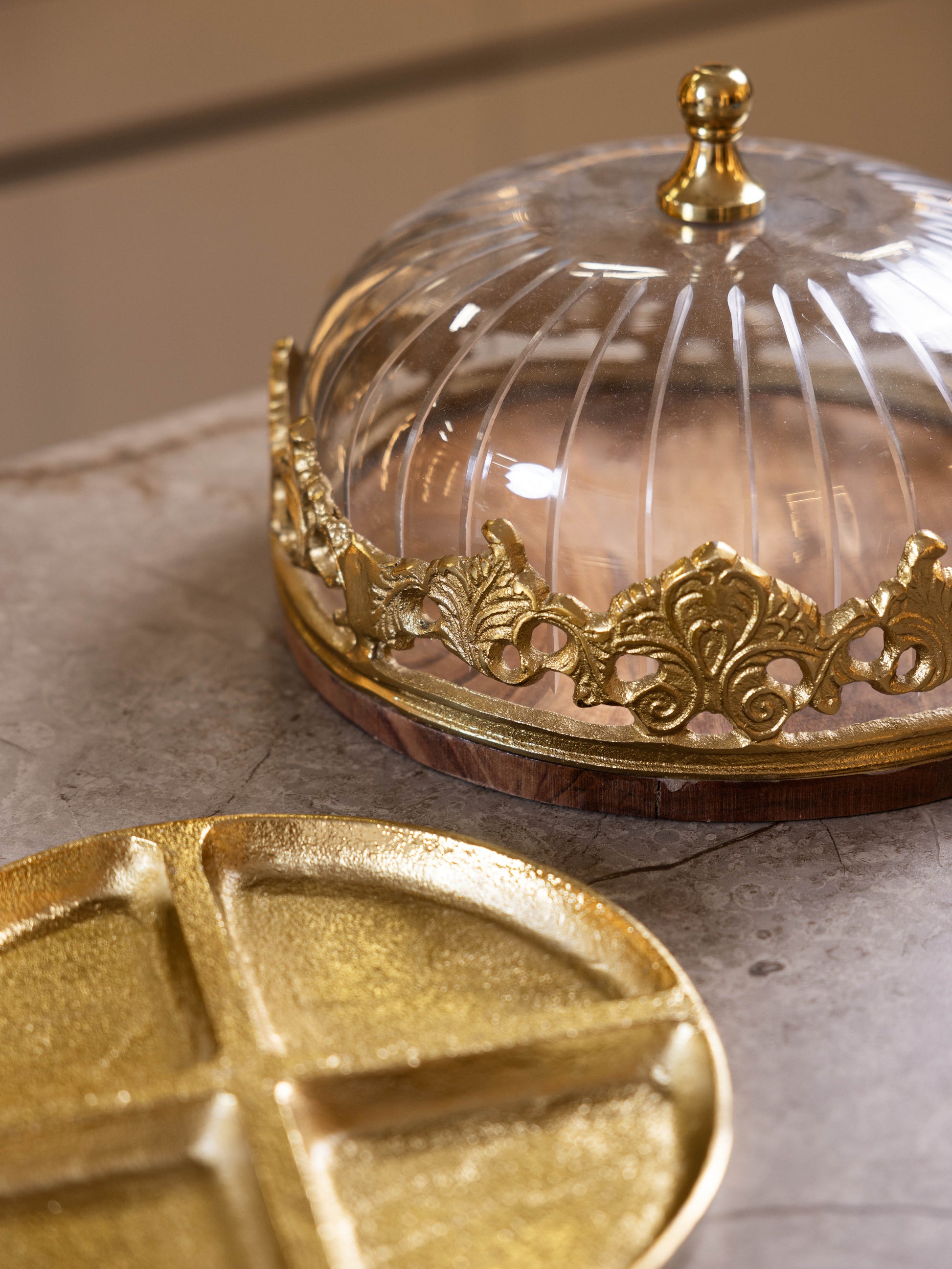 بتصميم مميز وأنيق , بقاعدتين ( قاعدة مقسمة للحلويات , قاعدة بدون تقسيمات للكيك )
