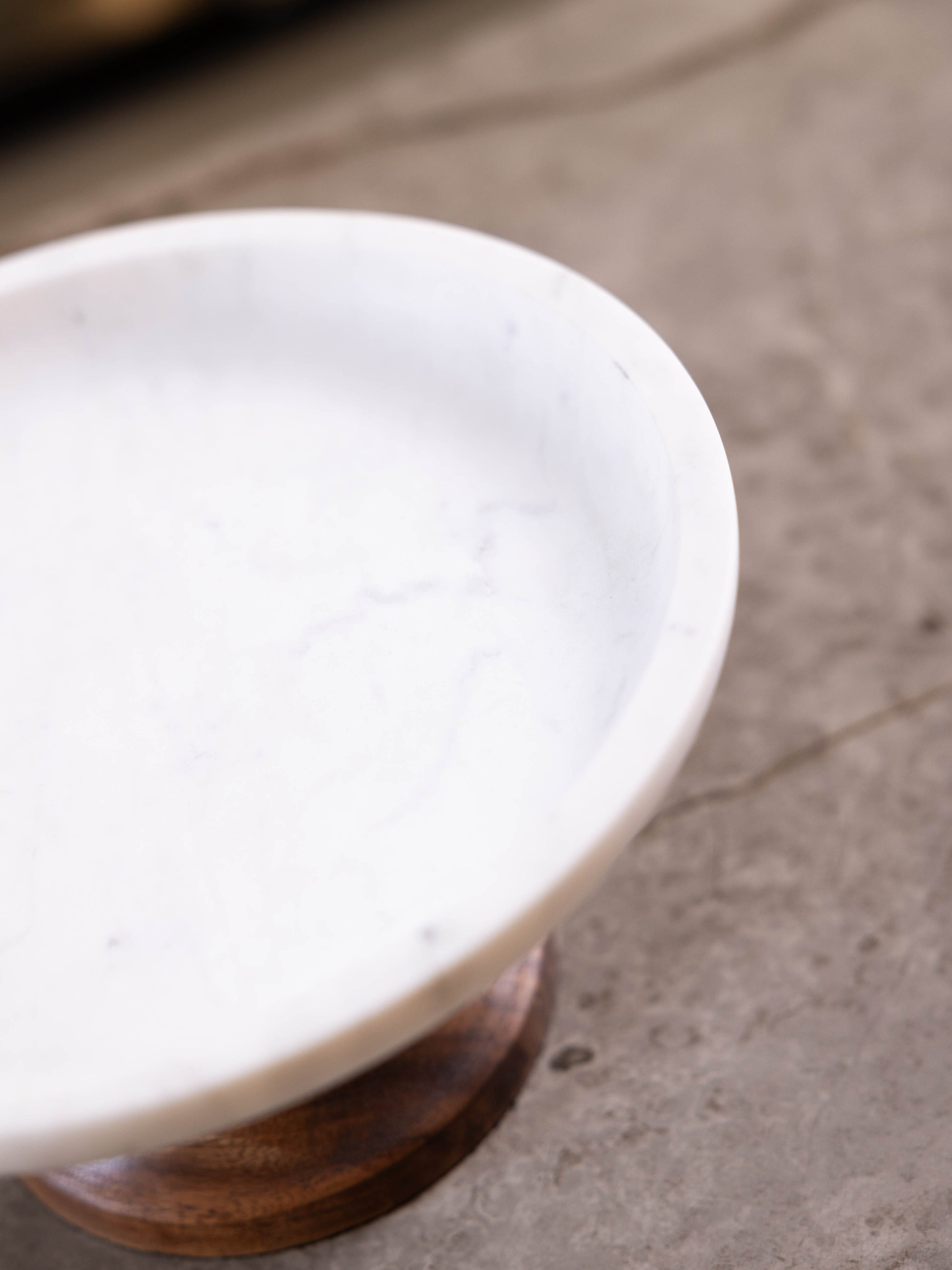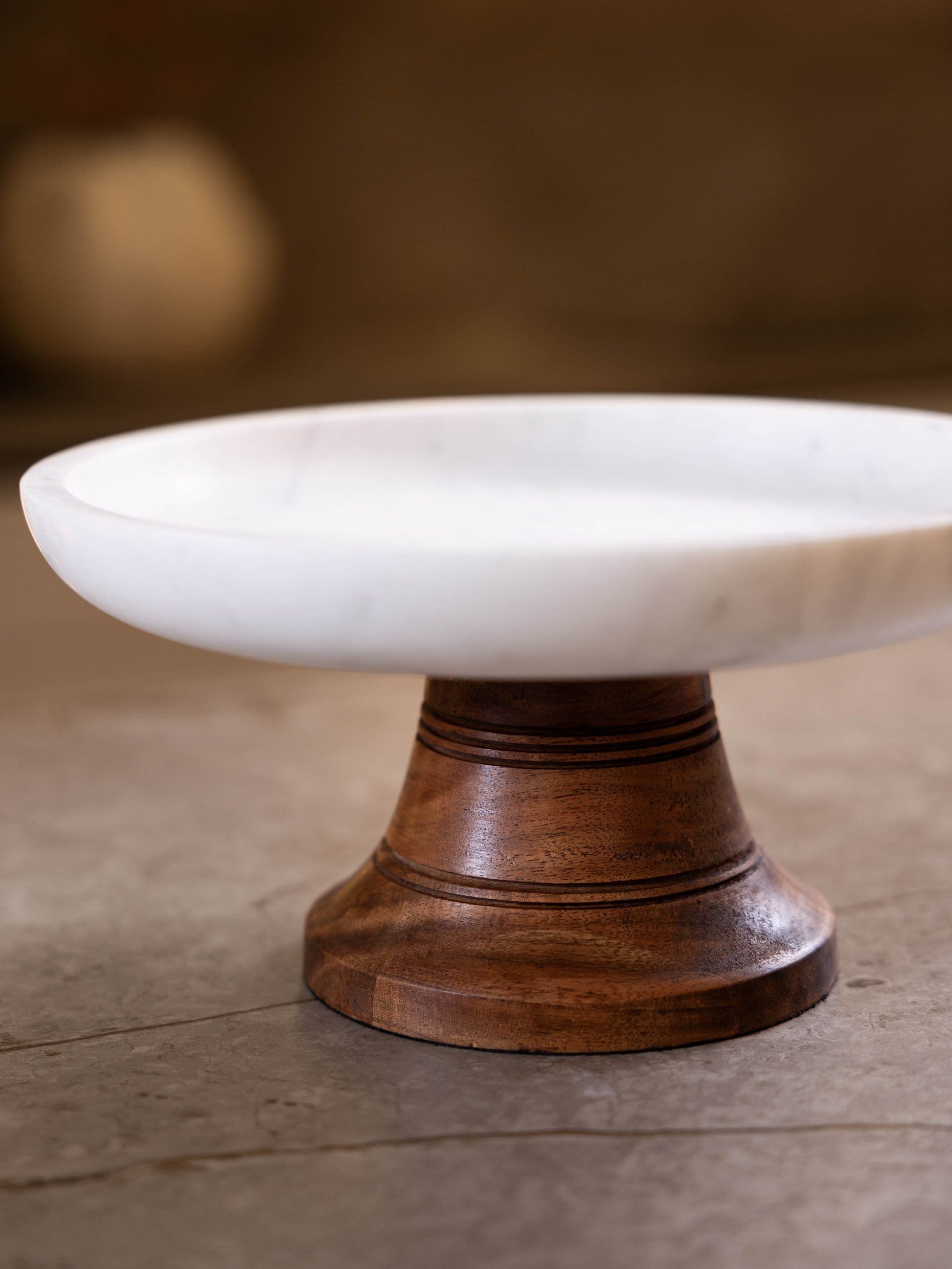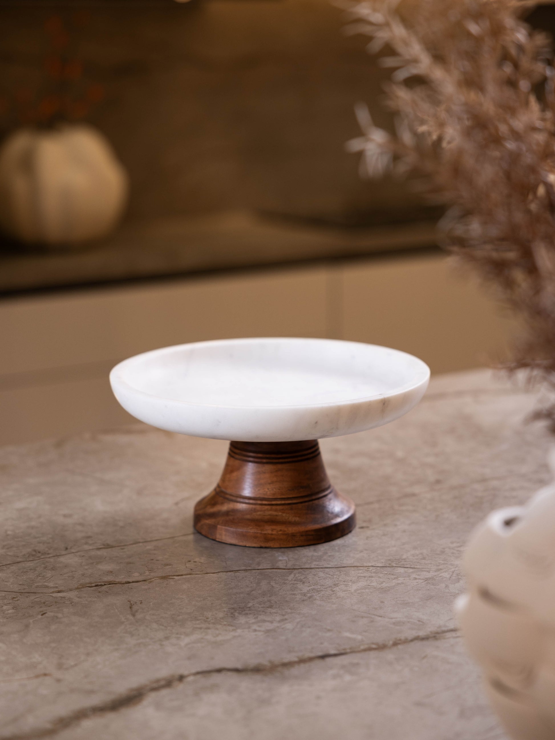 مضيفة كيك بقاعدة مصنوعة من الخشب والرخام