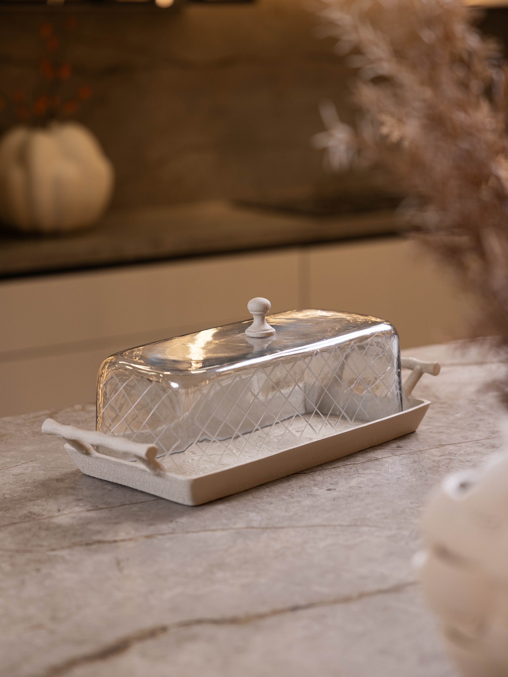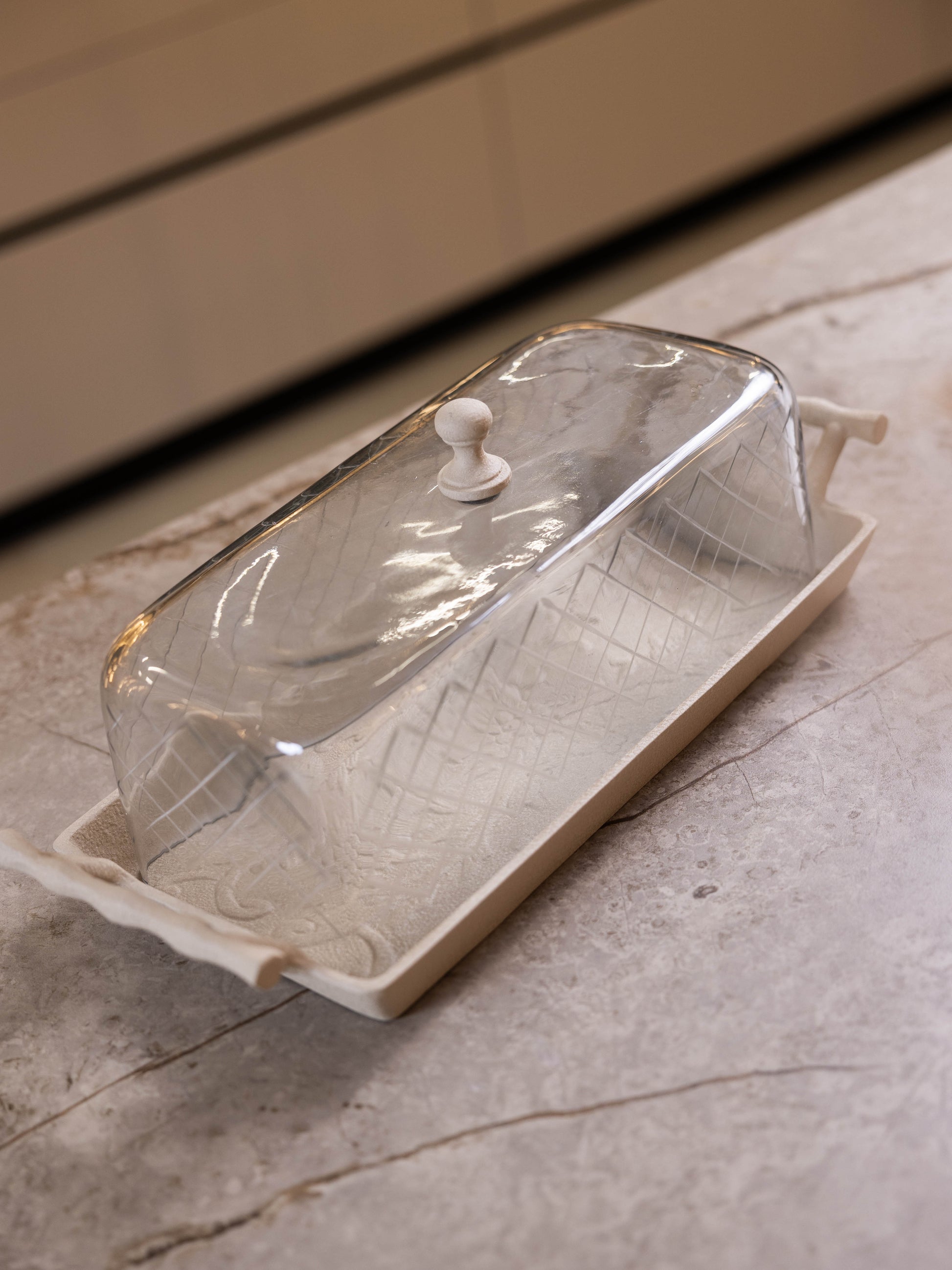 مضيفة كيك بغطاء زجاجي وقاعدة معدن