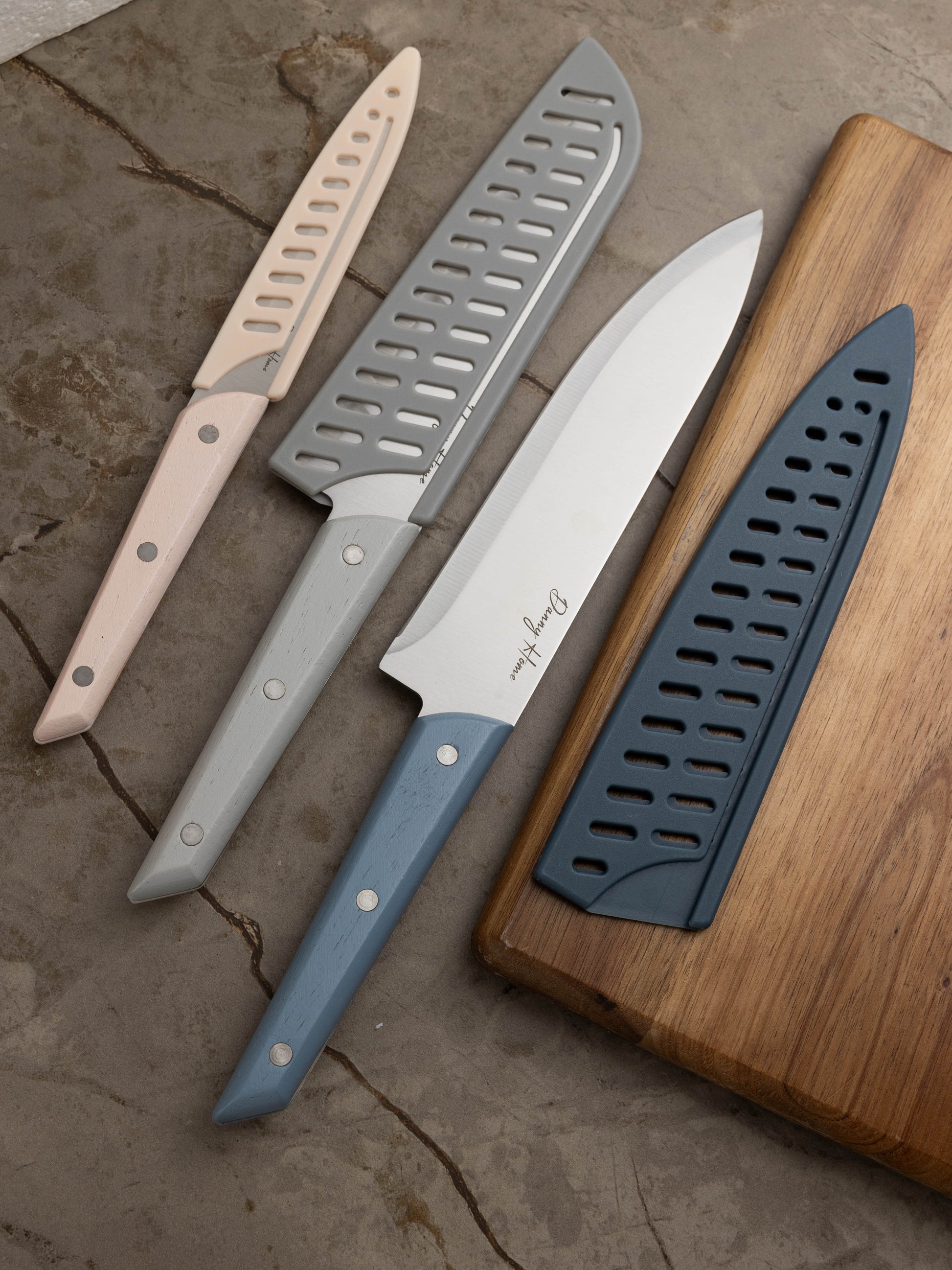 يتكون الطقم من 3 سكاكين بألوان مختلفة مع غطاء