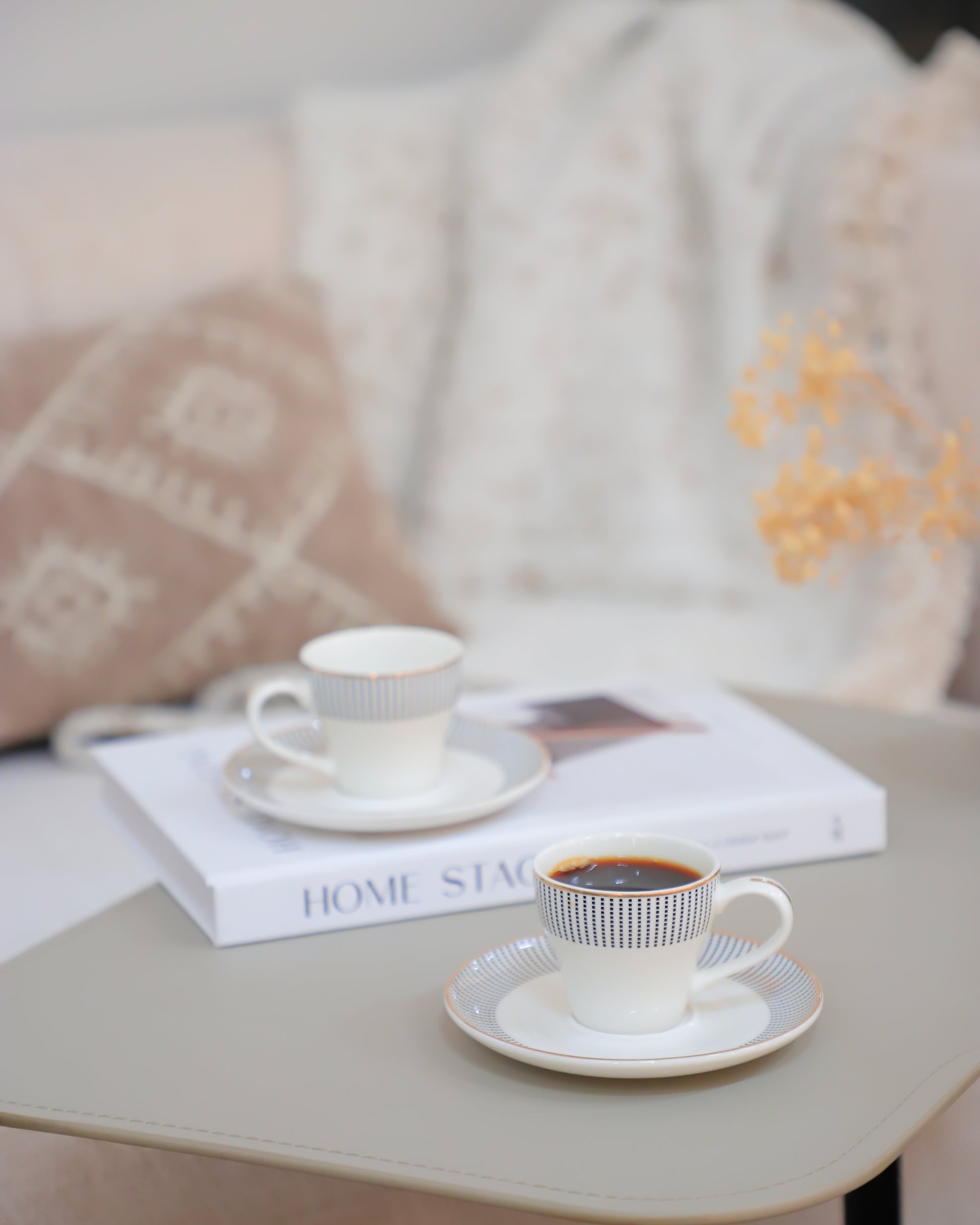 طقم فناجين قهوة بتصميم مميز و أنيق يخدم 6 أشخاص , مصمم