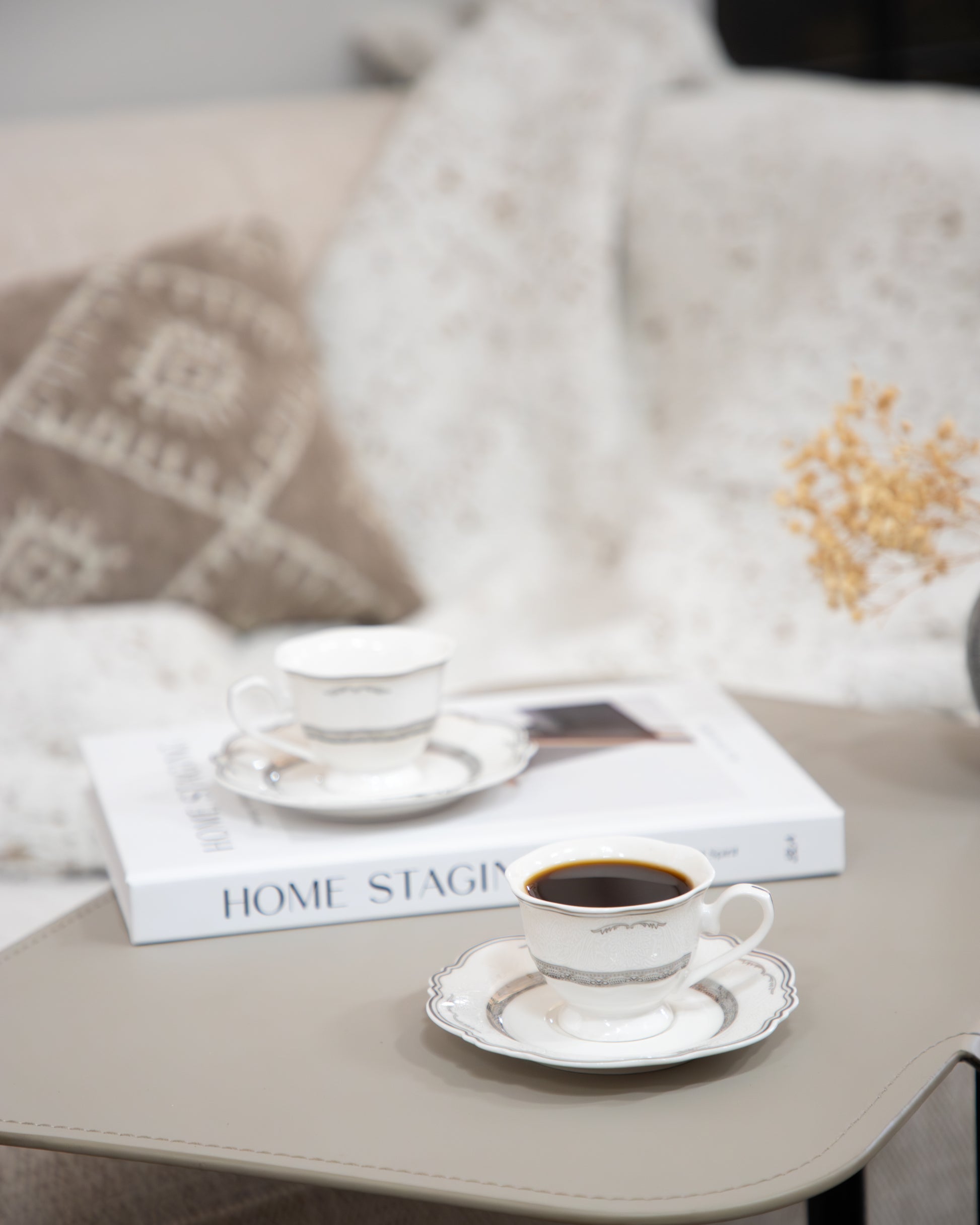 طقم فناجين قهوة بتصميم كلاسيك و أنيق يخدم 6 أشخاص , مصمم