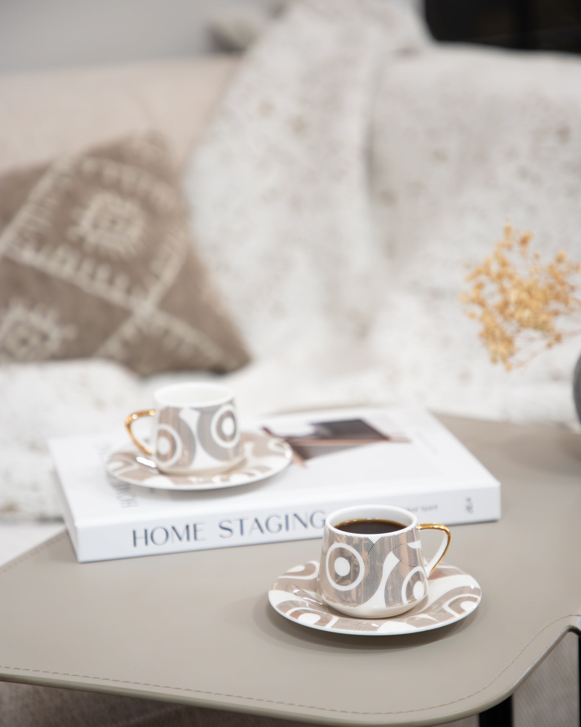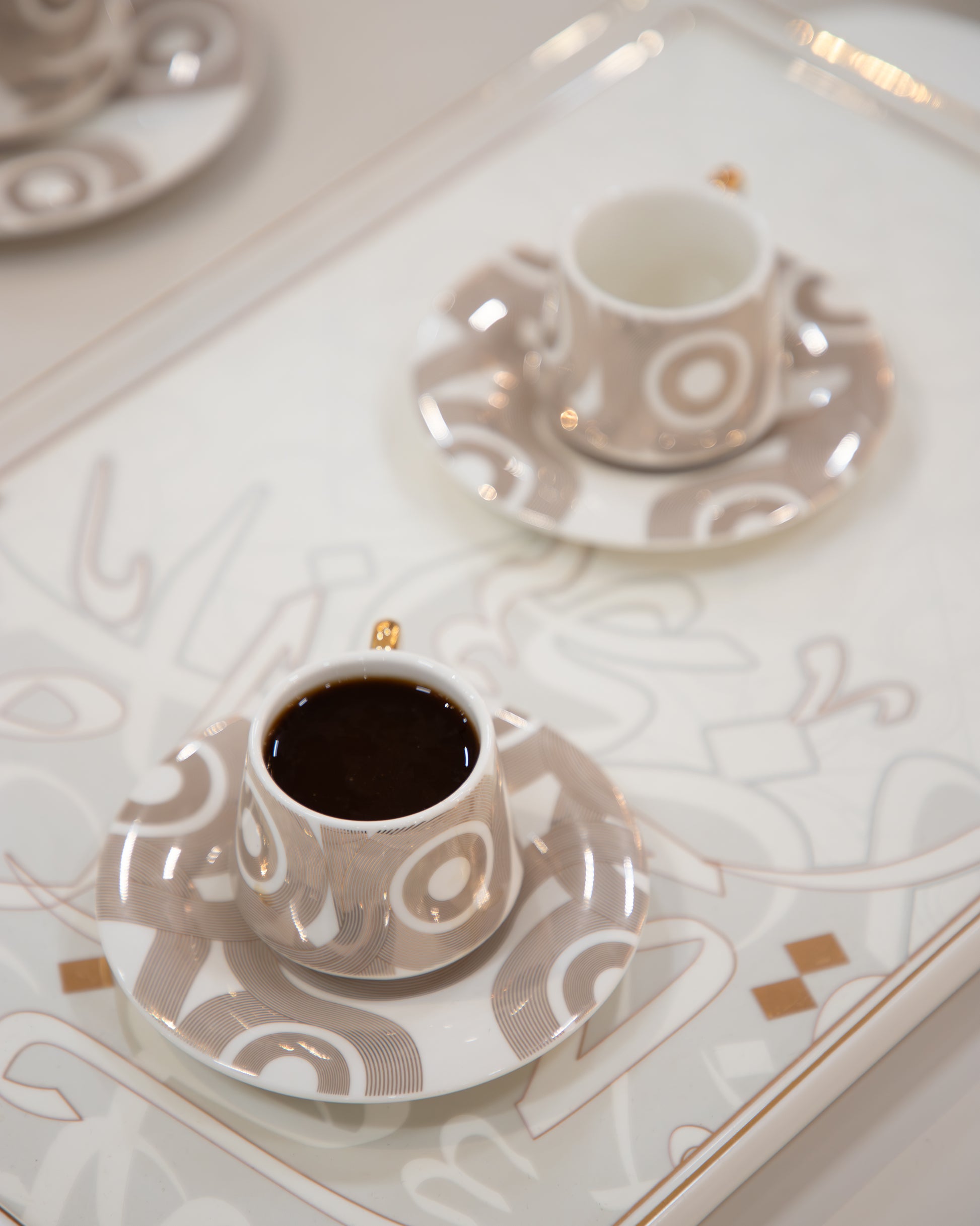 طقم فناجين قهوة بتصميم مميز و أنيق يخدم 6 أشخاص , مصمم