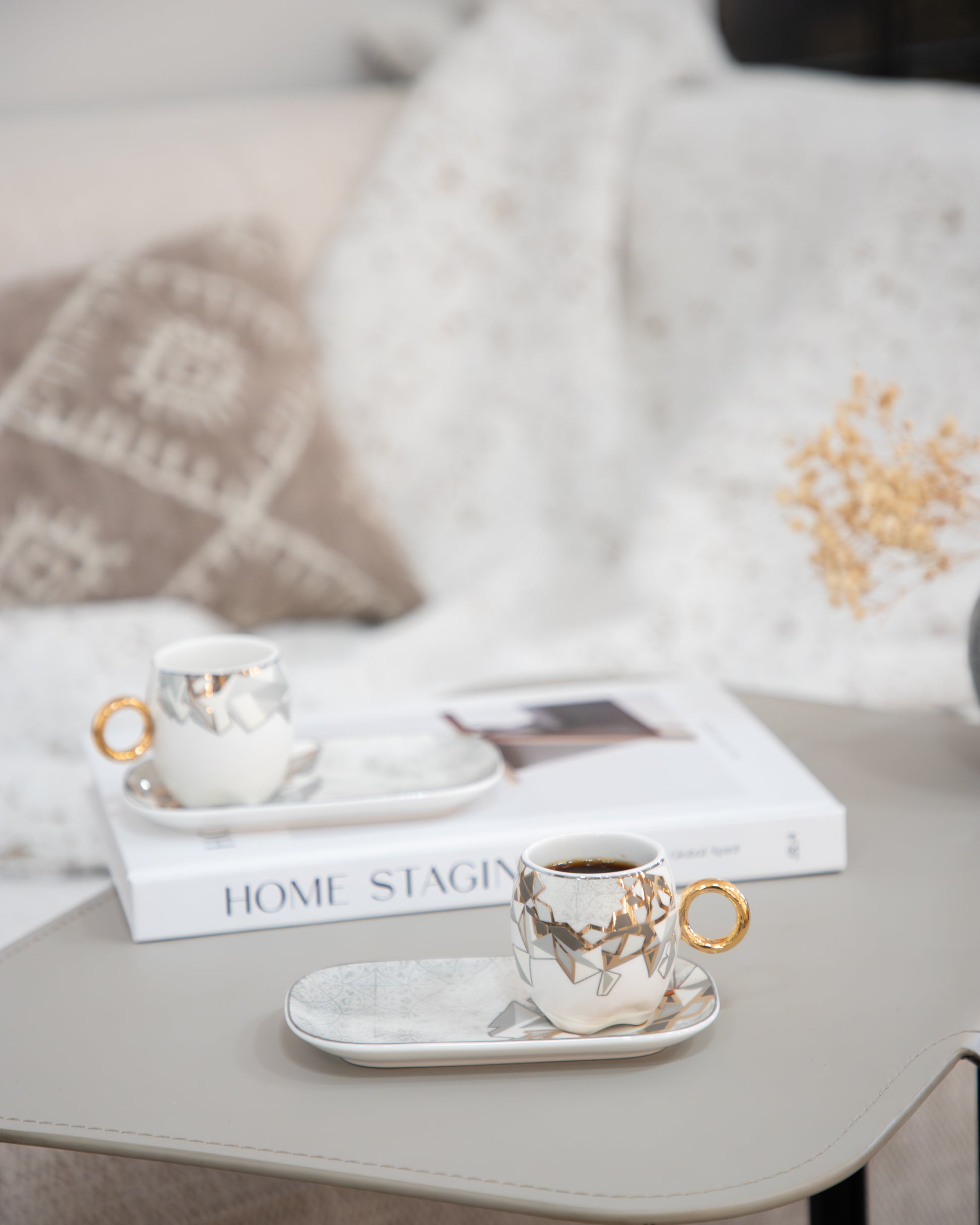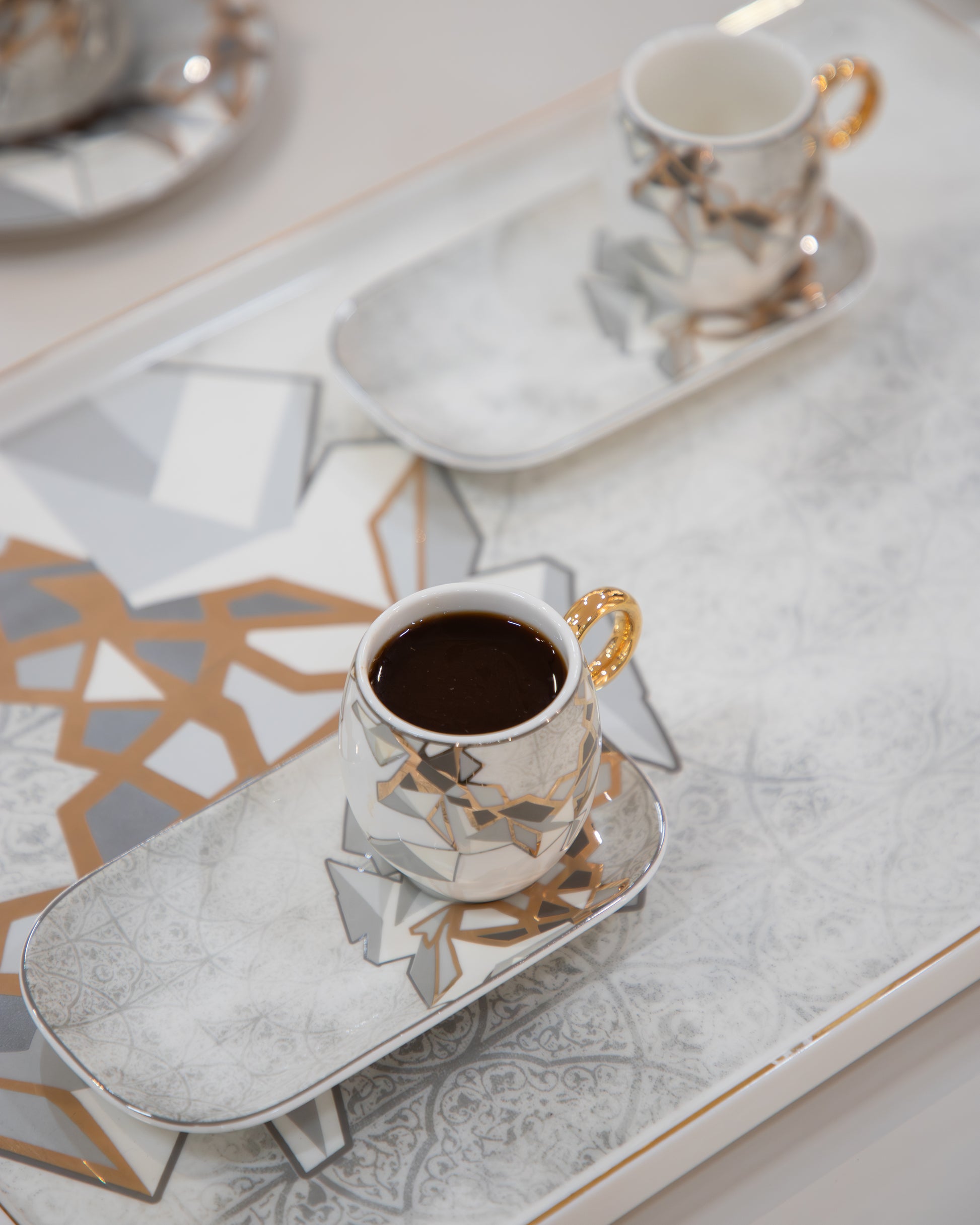 طقم فناجين قهوة بتصميم مميز و أنيق يخدم 6 أشخاص , مصمم