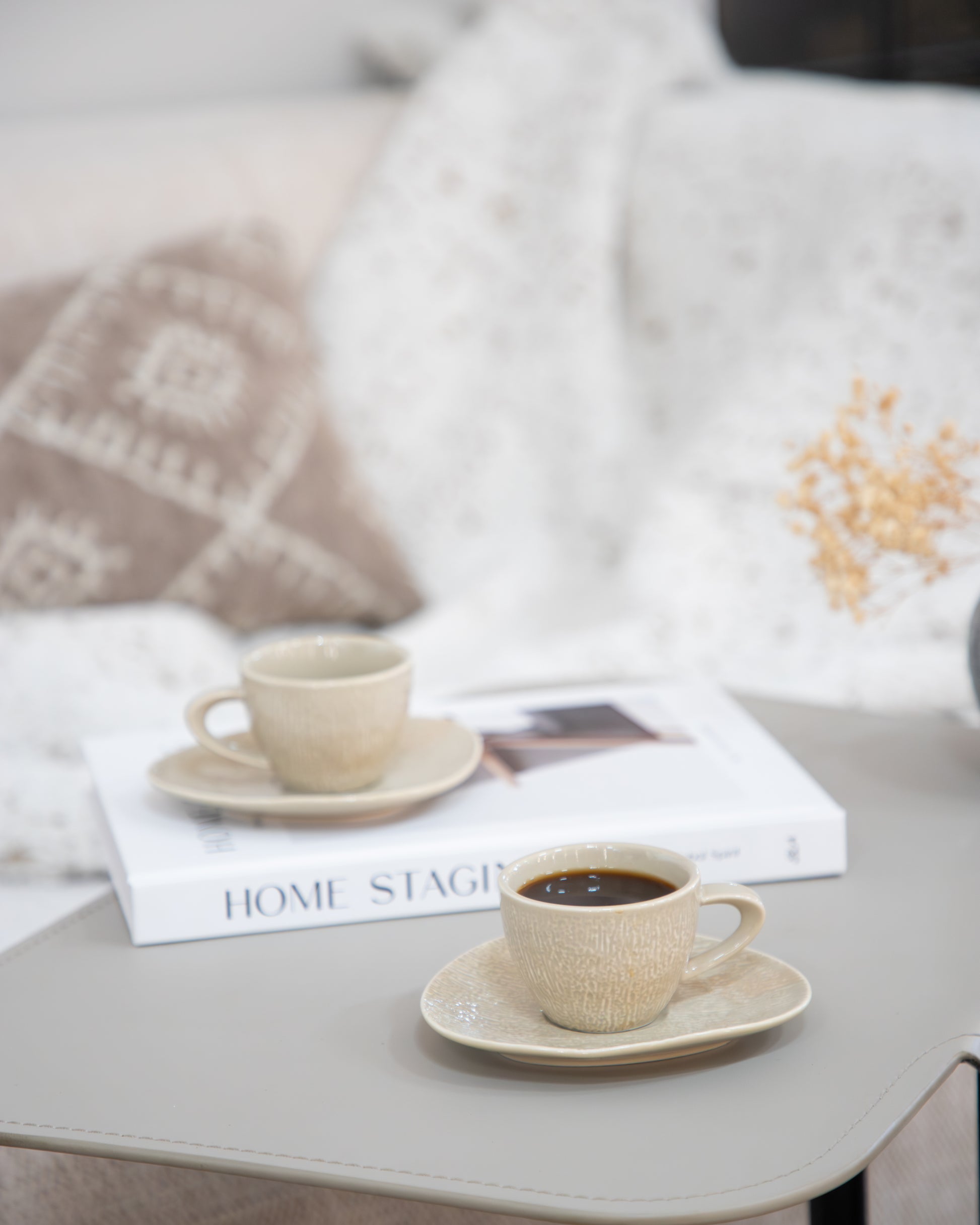 طقم فناجين قهوة بورسلان بيج بتصميم مميز و أنيق يخدم 6 أشخاص , مصمم