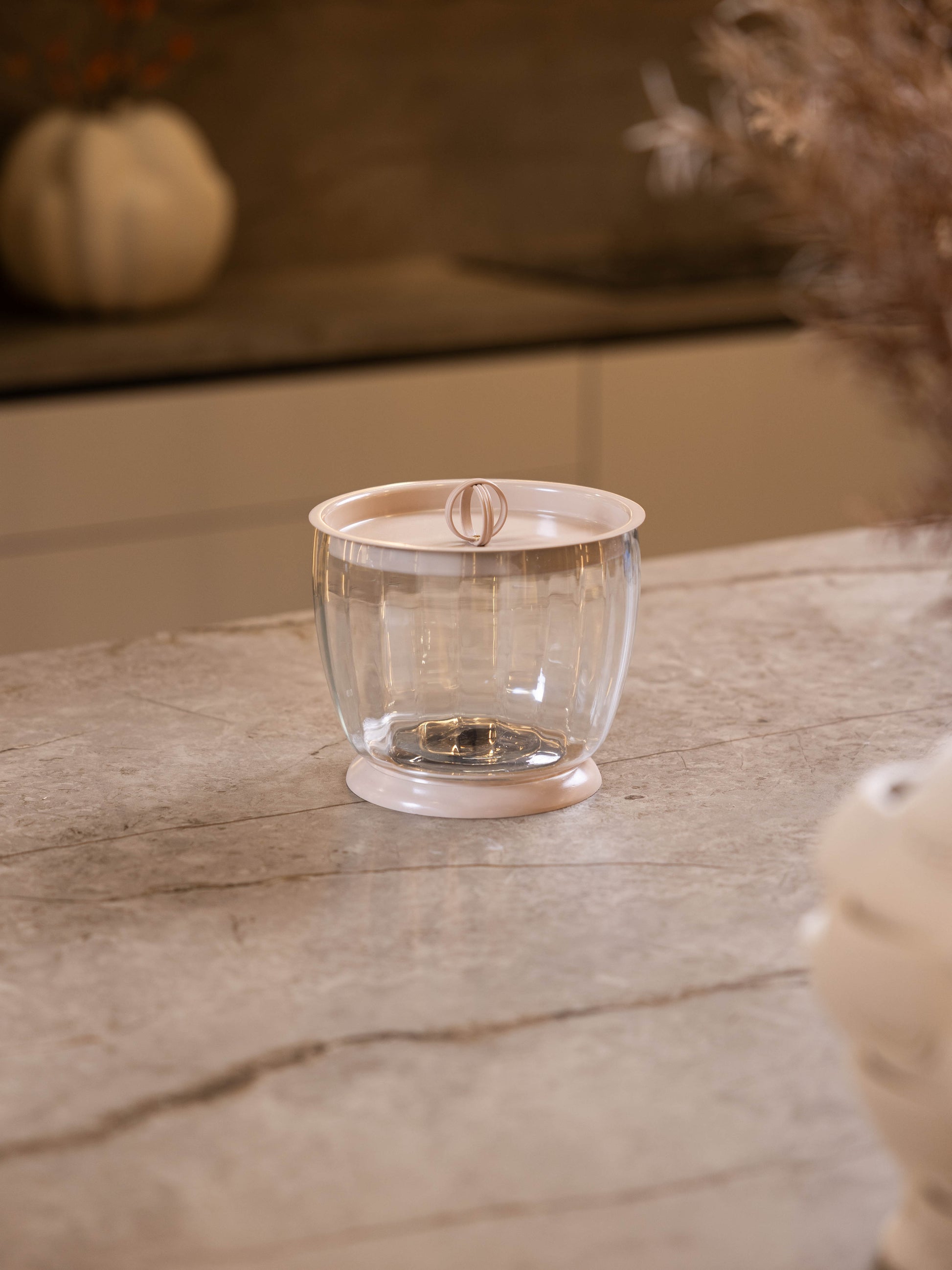 مضيفة حلويات بغطاء معدن وقاعدة زجاج