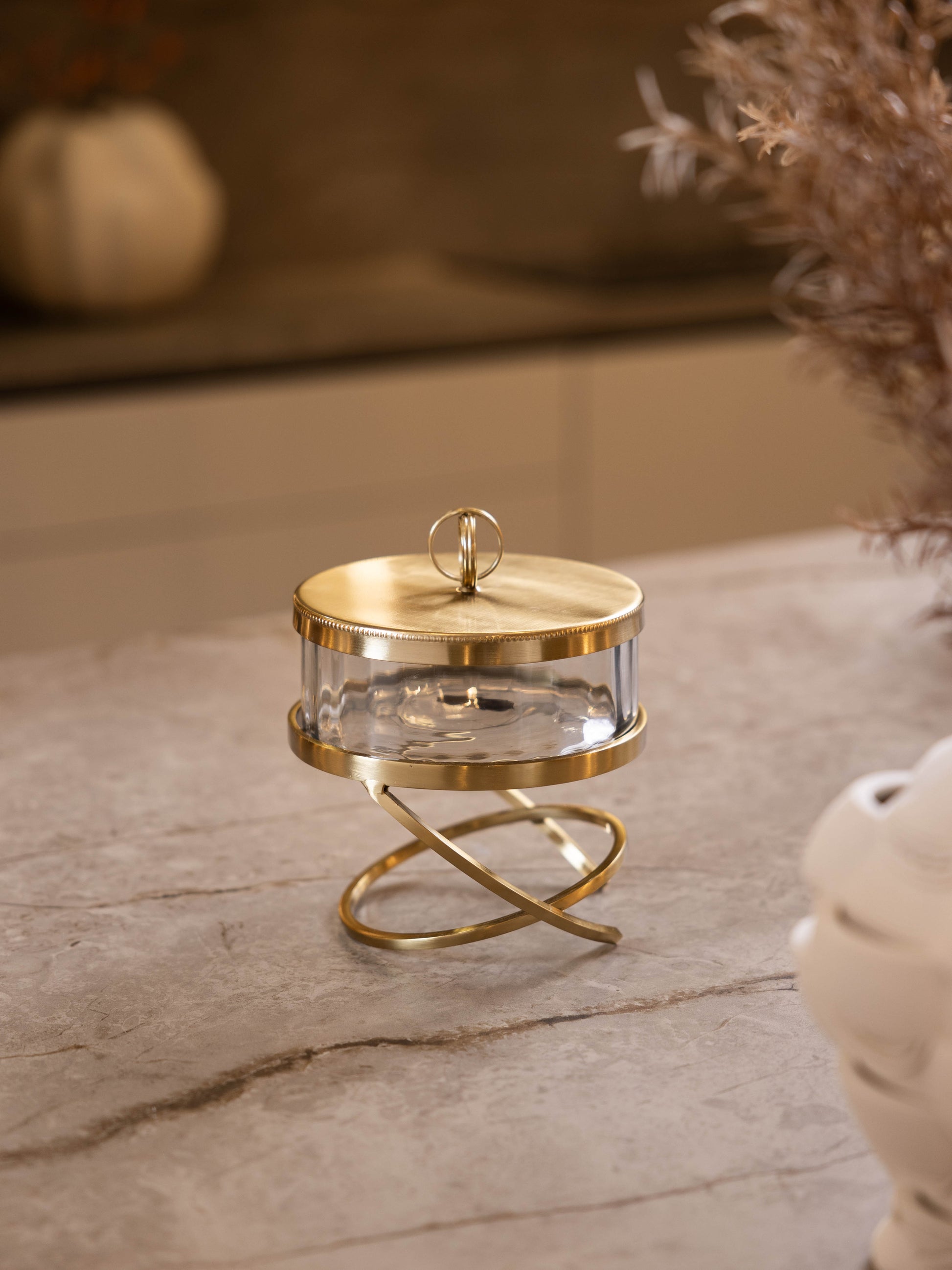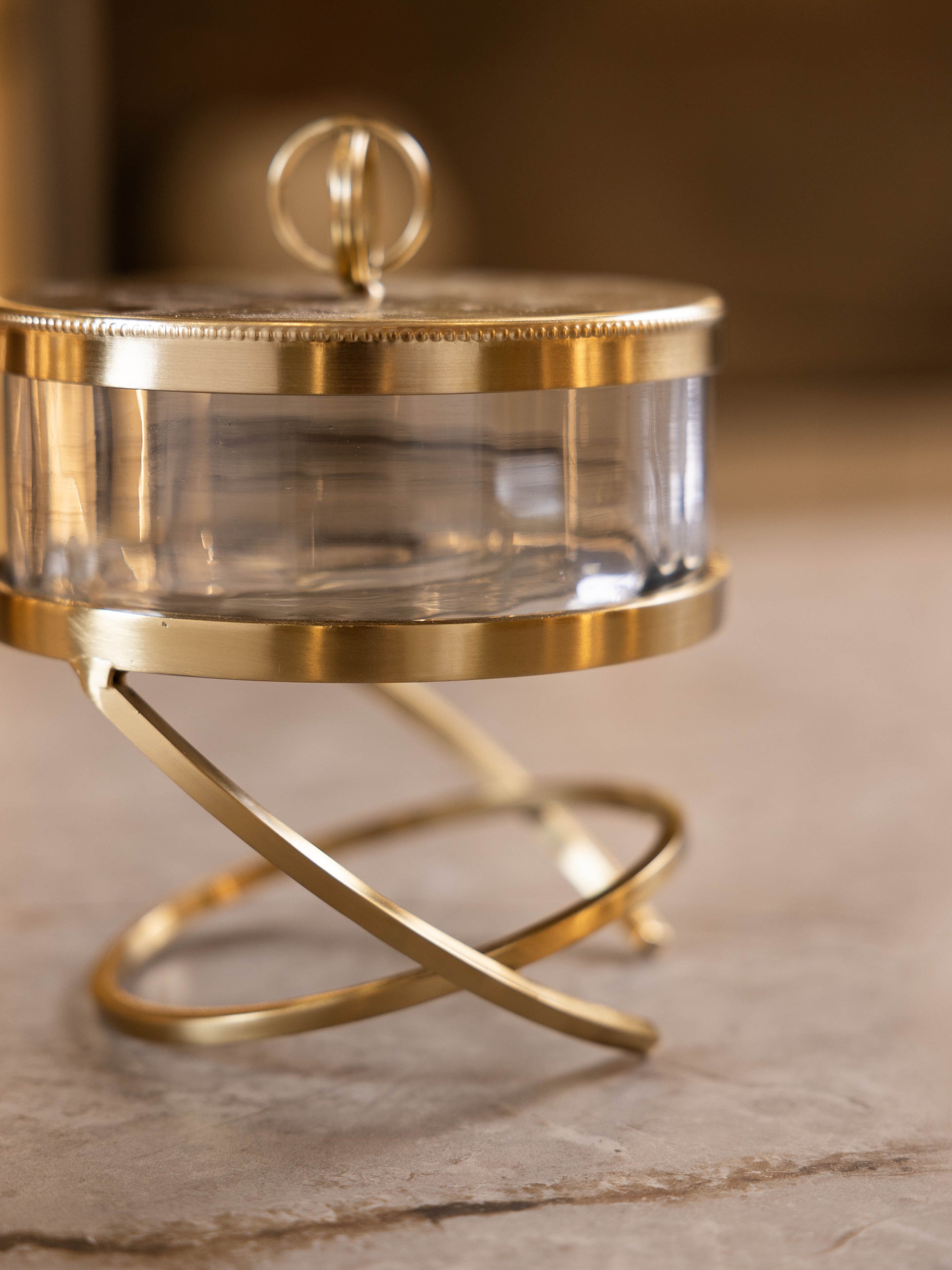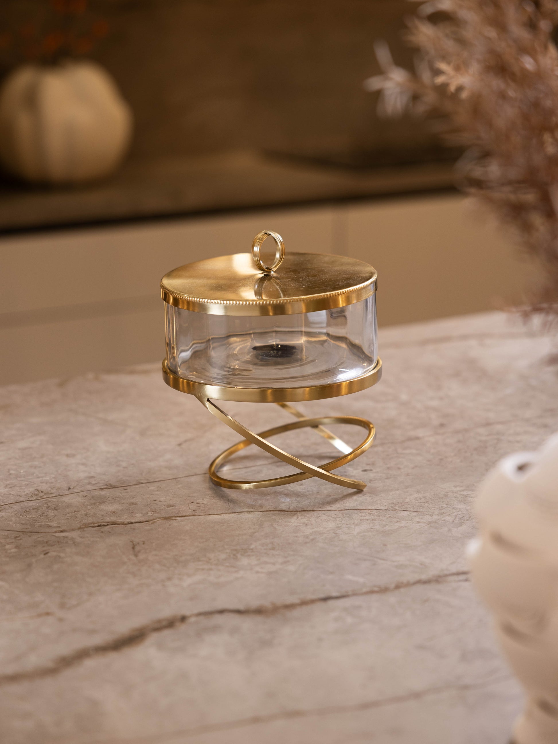 مضيفة حلويات بغطاء معدن وقاعدة زجاج