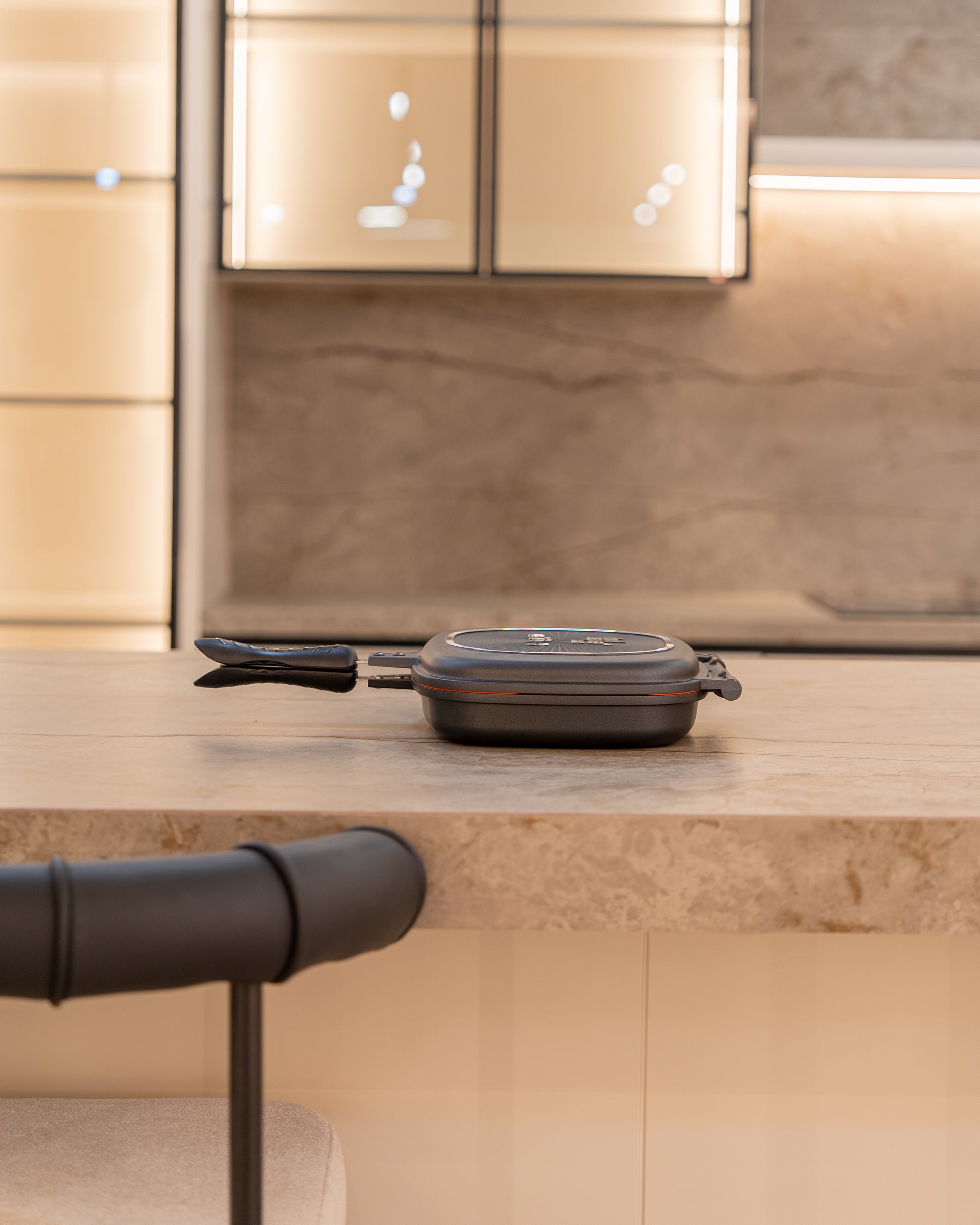استمتعي بتجربة شواء سهلة ونظيفة مع مقلاة الشواء المزدوجة المصممة